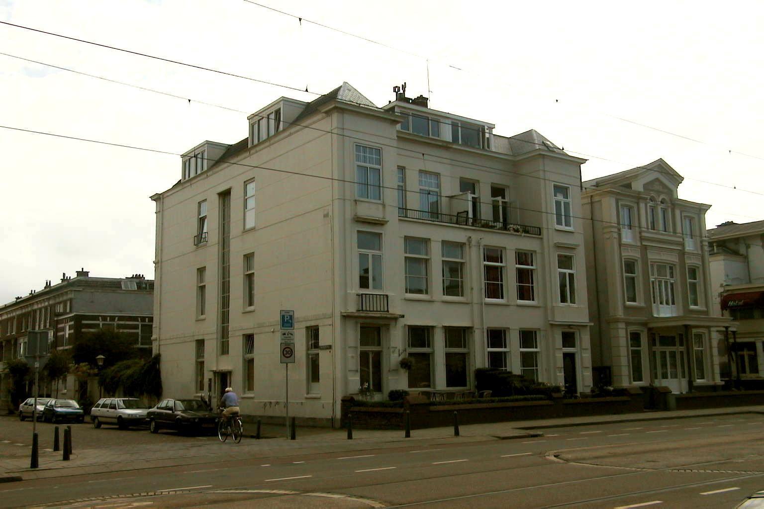 Dit voormalig hotel/pension in de vorm van een dubbele villa is één van de grootste in de rij van dergelijke vooroorlogse etablissementen aan de Gevers Deynootweg. De bouw ervan langs deze weg had direct te maken met de onstuimige ontwikkeling van de badplaats aan het einde van de negentiende eeuw waardoor naast grote hotels als Seinpost en het Kurhaus tal van etablisssementen en pensions verrezen voor de huisvesting van de sterk toenemende stroom badtoeristen. Vaak is sprake van een combinatie tussen wonen, pension en hotel. De symmetrisch opgebouwde voorgevel van zes traveeën breed had van oorsprong twee eindrisalieten waartussen de gevel over alle bouwlagen ternglag en was voorzien van balkons met houten hekwerken.
