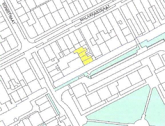 Exploitatiehofje van vier woningen uit 1881 gelegen achter de hoofdbebouwing van de Malakkastraat. Bekend onder de naam Malakkahofje.