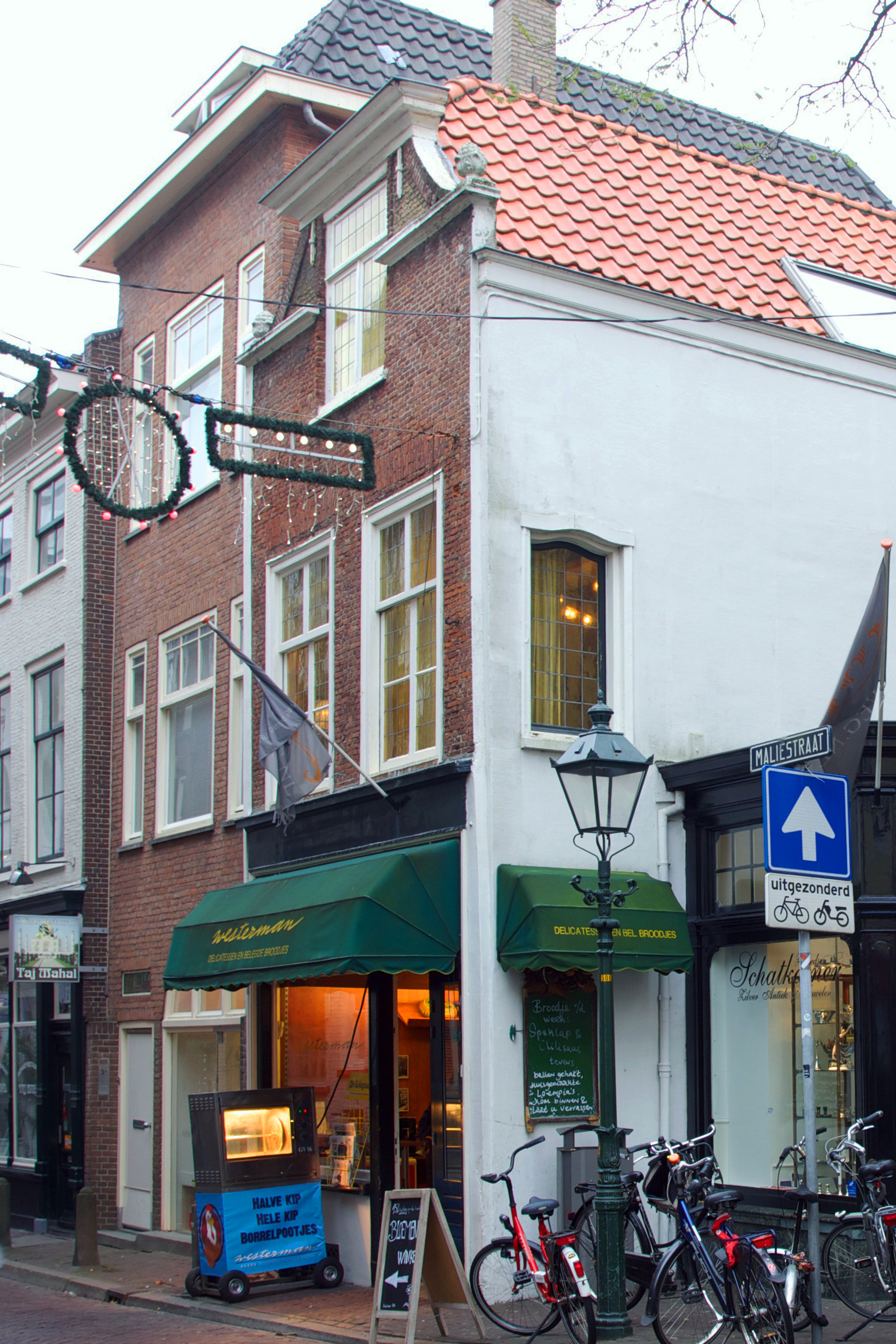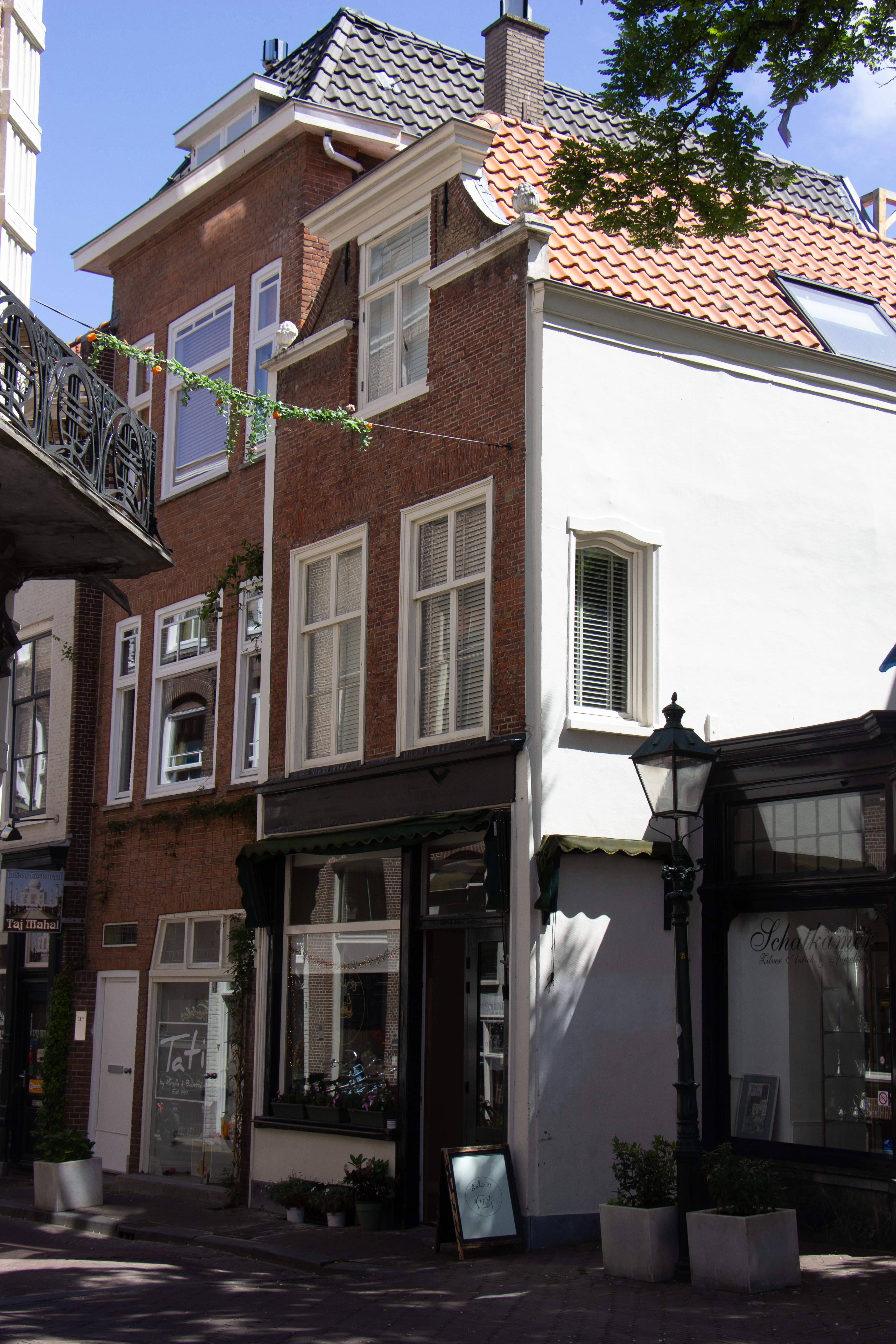 Pand met ingezwenkte halsgevel met aanzetvazen en recht afgedekte top van omstreeks 1700.