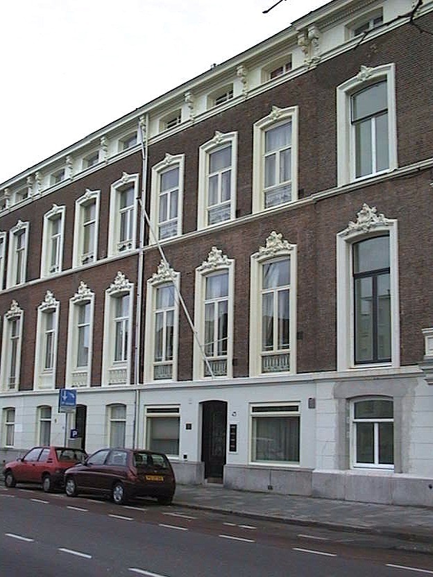 Pand op rechthoekige plattegrond, bestaande uit een lage parterre, beletage, verdieping en lage kapverdieping in het met zink gedekte zadeldak, drie vensterassen breed waarvan de middelste de ingang bevat. De parterre vertoont een bekleding met hardsteen; voor het overige is de gevel als schoon-werk uitgevoerd met uitzondering van de zolderverdieping die bepleisterd is. De vensters met hun T-vormige stolpramen bezitten flauw getoogde geprofileerde houten omlijstingen met kuiven van stucwerk. Voor de ramen bevinden zich gietijzeren gedecoreerde raamhekjes. De verdiepingen worden door geprofileerde waterlijsten gescheiden. De zolderverdieping bezit lage, liggende vensters waartussen gedecoreerde voluutconsoles van de met modillons versierde houten kroonlijst zijn geplaatst. De oorspronkelijke deur is door een moderne vervangen. Ook de brede vensters aan weerszijden van de deur zijn een latere wijziging. Waardering.