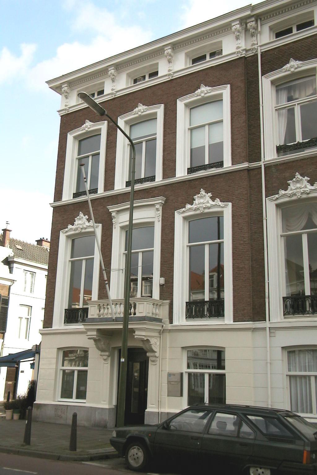 Pand op rechthoekige plattegrond, bestaande uit een lage parterre, beletage, verdieping en lage kapverdieping in het met zink gedekte halve schilddak, drie vensterassen breed. Het grotendeels ongepleisterde pand heeft in de voorgevel een geblokte gepleisterde parterre op een hardstenen plint. De kapverdieping is aan voor- en zijgevel gepleisterd. De verdiepingen worden door geprofileerde waterlijsten gescheiden. De vensters in de voorgevel hebben flauw getoogde, geprofileerde houten omlijstingen; in de verdiepingen met decoratieve kuifstukken, met uitzondering van het middenvenster boven de ingang, dat een kroonlijst op consoles bezit. In de vensters T-vormige stolpramen. Boven de deur een balkon met balustrade, gedragen door zware, gedecoreerde voluutconsoles. Onder de houten kroonlijst die met modillons is versierd, bevinden zich versierde voluutconsoles waartussen de liggende vensters van de kapverdieping. De vensters van de beletage en de verdieping bezitten gietijzeren sierhekjes. In de zijgevel zijn drie ronde vensters met gietijzeren harnassen aangebracht, ter verlichting van het trappenhuis. Waardering.