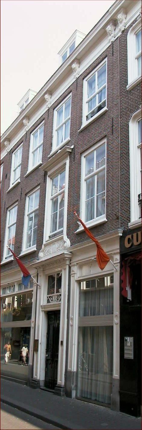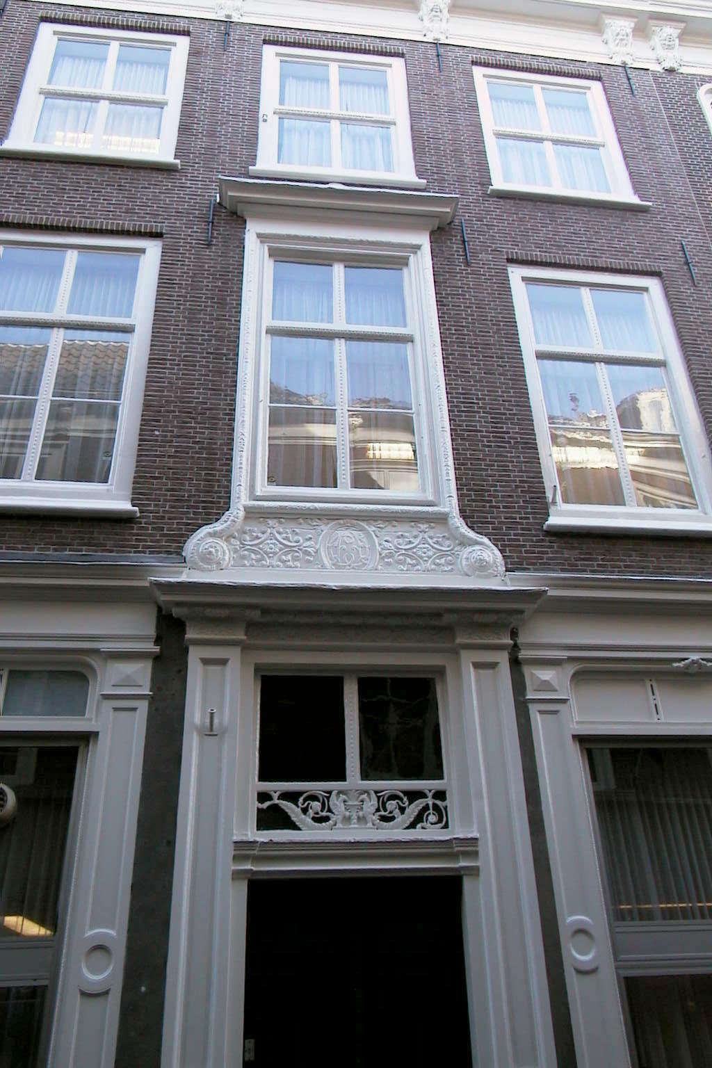 Pand met 18e eeuwse gevel met kroonlijst op gesneden maskerconsoles en versierde ingangspartij.