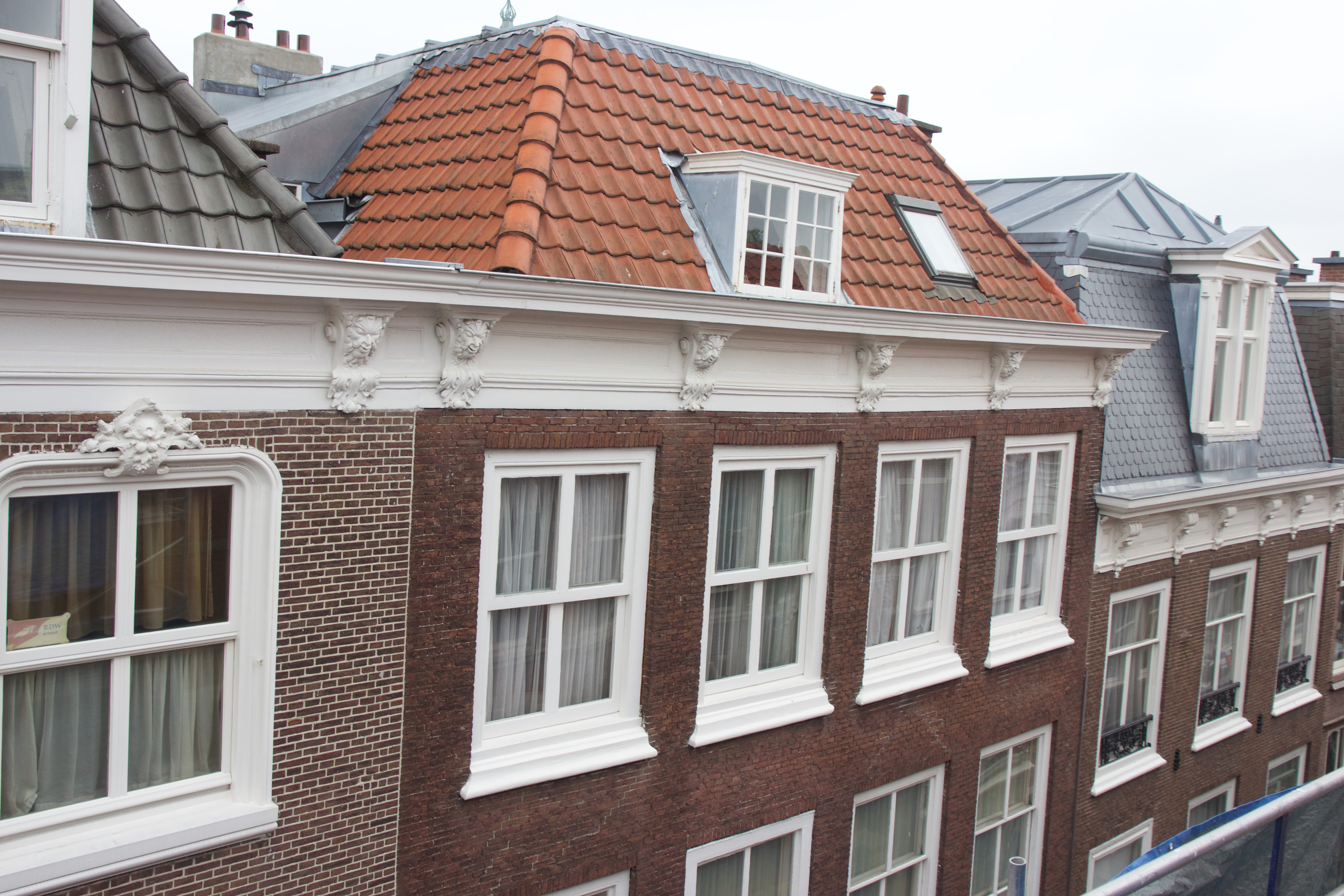 Pand met 18e eeuwse gevel met kroonlijst op gesneden maskerconsoles.