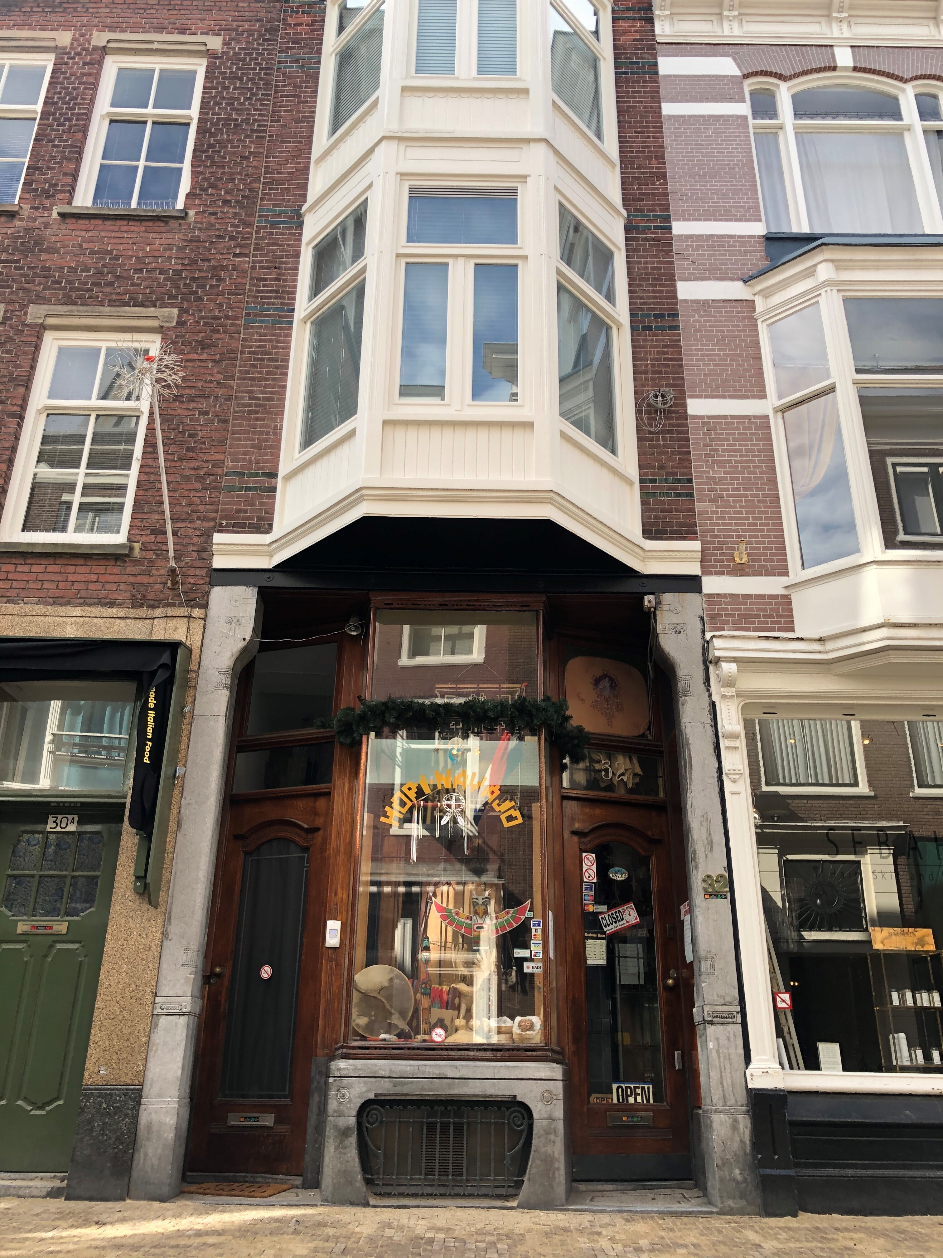 In 1911 werd er een vergunning aangevraagd voor het verbouwen van het winkelhuis Molenstraat 32. Daarbij werd het pand ingrijpend gewijzigd: er kwam een bouwlaag en een kapverdieping met afgeknot schilddak bovenop. Ook de gevel werd aangepast met een houten pui en een houten erker doorlopend over de eerste en tweede verdieping. De pui bestaat uit een etalage met aan weerszijden terugliggende ingangsportieken. De winkelpui heeft een hardstenen plint en penanten met gegraveerde decoraties. De ingangsportieken hebben terrazzo vloeren. Ook inwendig werd het pand compleet vernieuwd.