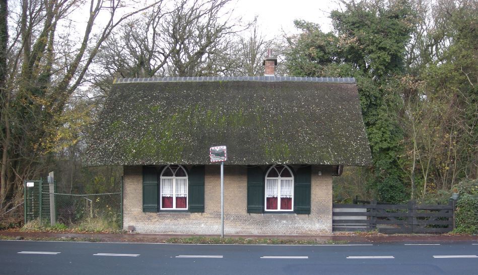 Voormalig boswachtershuis in neogotische stijl uit 1848, dat behoort bij het landgoed "Van Leyden-hof", dat vroeger toebehoorde aan de familie Van Leyden en toen genaamd was "De Bremhof". Het rechthoekige pandje telt een bouwlaag met een overhuivend zadeldak dat met riet is gedekt en een met pannen beschermde nokvorst bezit. Het pand is opgetrokken uit geelkleurige baksteen in kruisverband. In de gevels spitsboogvensters met houten omlijstingen waarin stolpramen en rollagen onder de vensterbanken, In een baksteen in de voorgevel is vermeld: "AH/1848". Tegen de achtergevel bevindt zich een rechthoekige aanbouw.