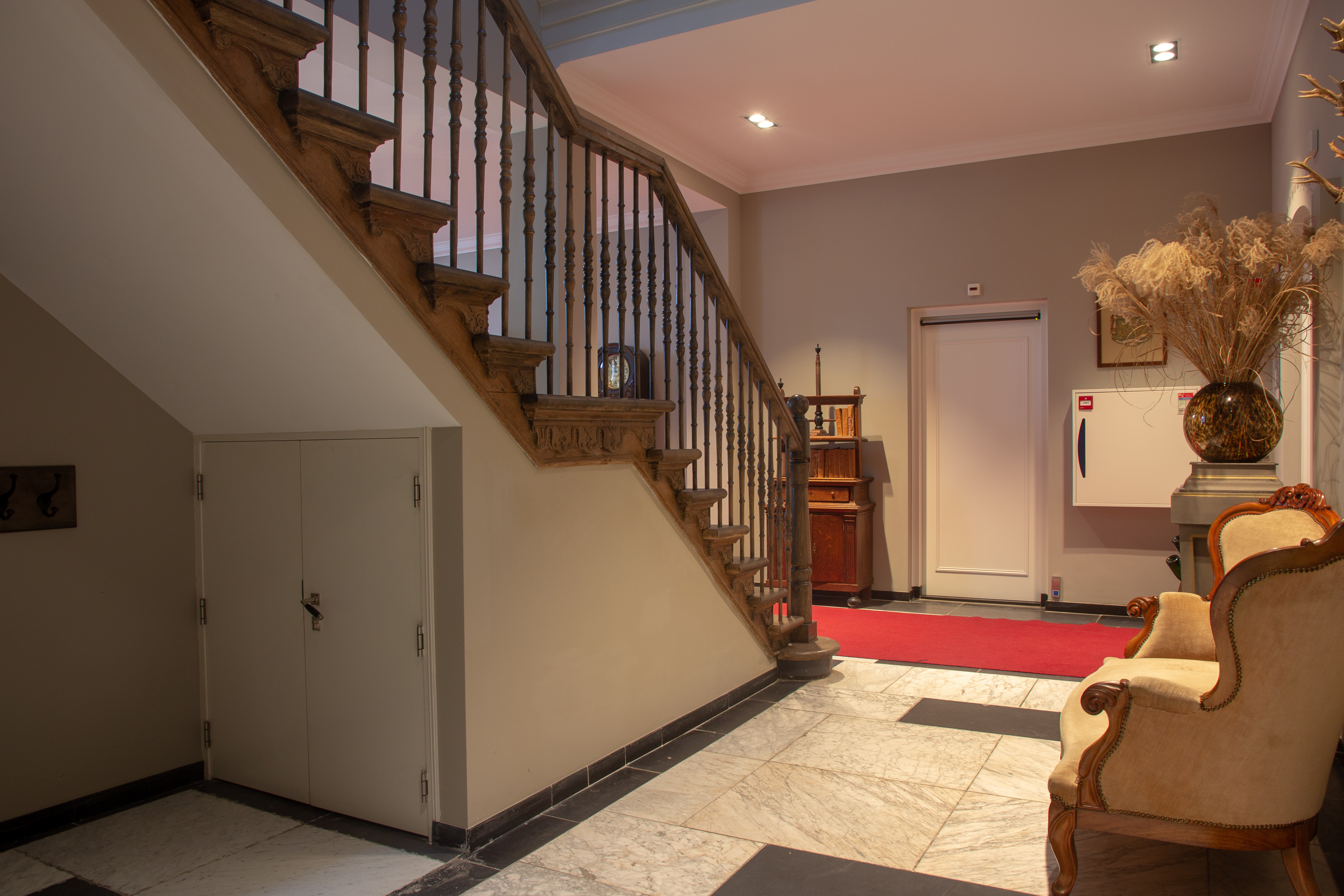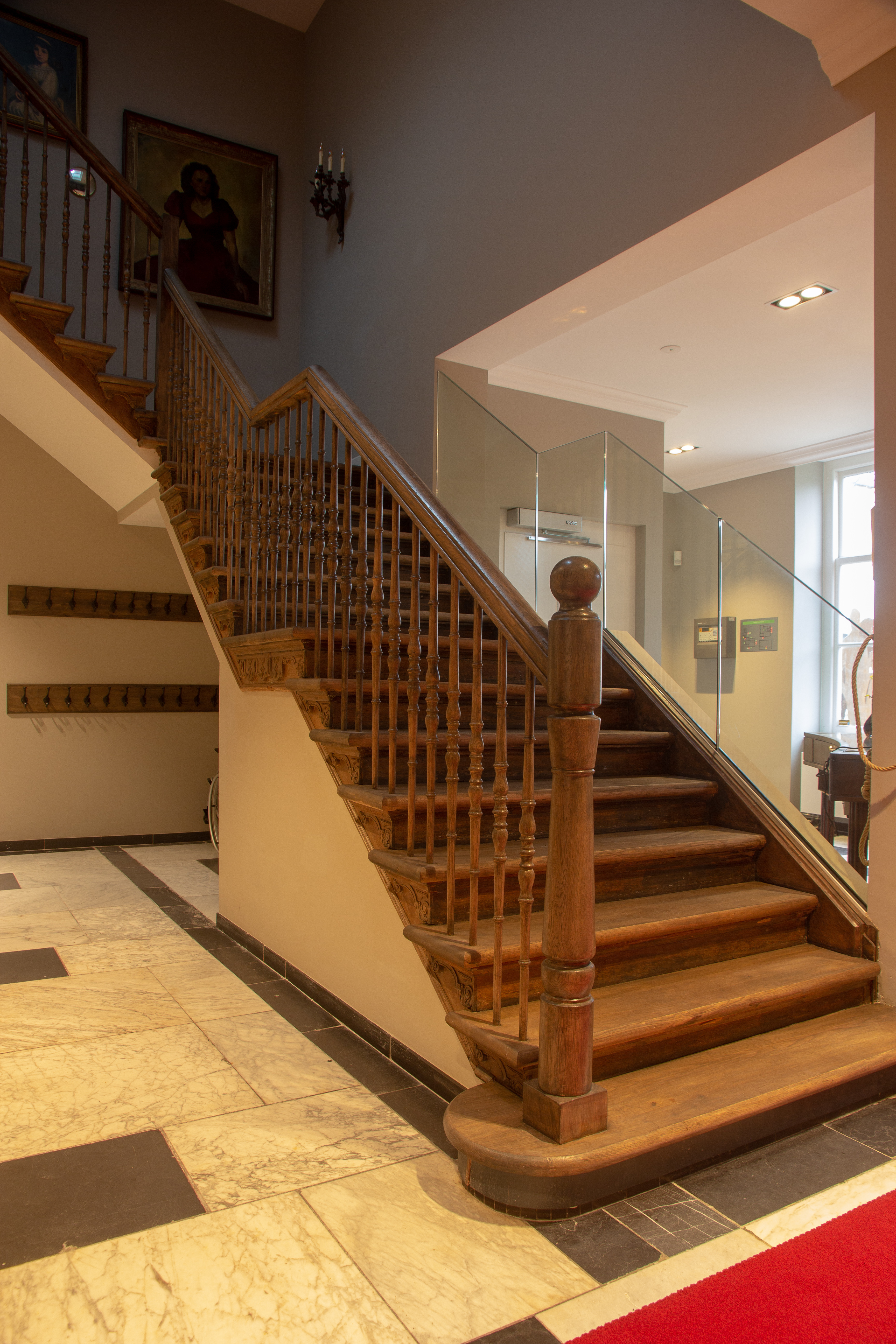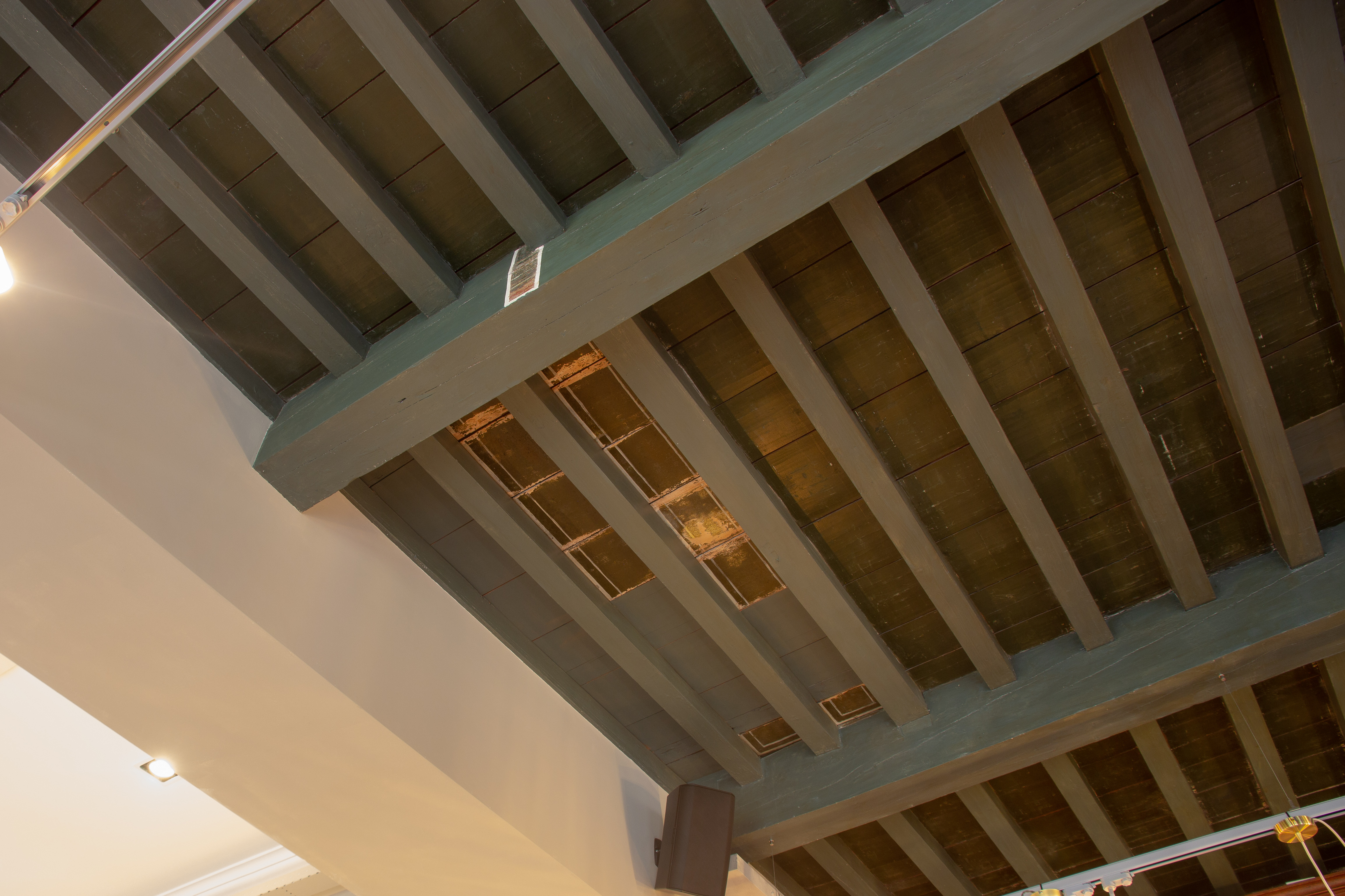 In het interieur is een grenenhouten balkenzoldering in een van de kamers bewaard gebleven en in de hal ten dele marmeren zwart-wit tegels.