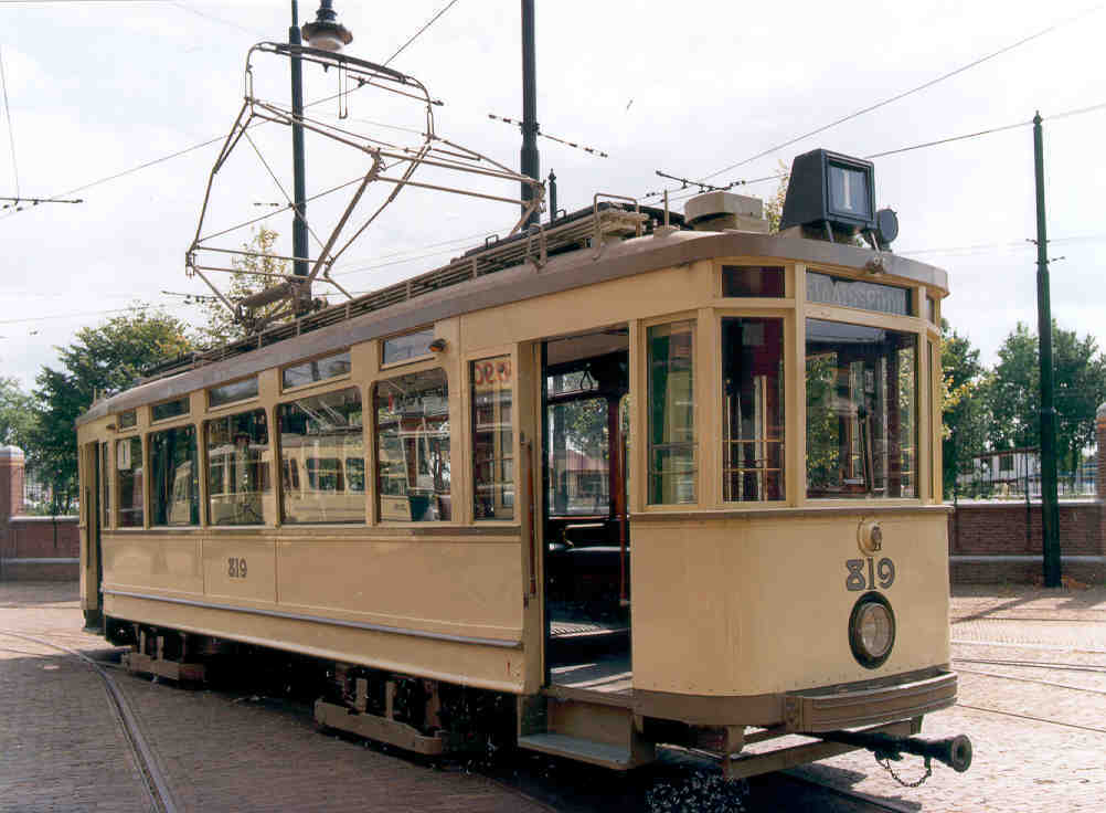 Van de serie 801-830 hadden vijf motorwagens (816-820) enigzins instelbare trucks, een, overigens mislukte, poging om slijtage aan wielen en rails in de bochten te beperken. De HTM heeft deze merkwaardige constructie op deze vijf rijtuigen tot het laatste toe gehandhaafd. Deze motorwagens waren eerst in de stad, die van pantografen waren voorzien. De Motorwagen deed dienst tot en met 30 oktober 1965.