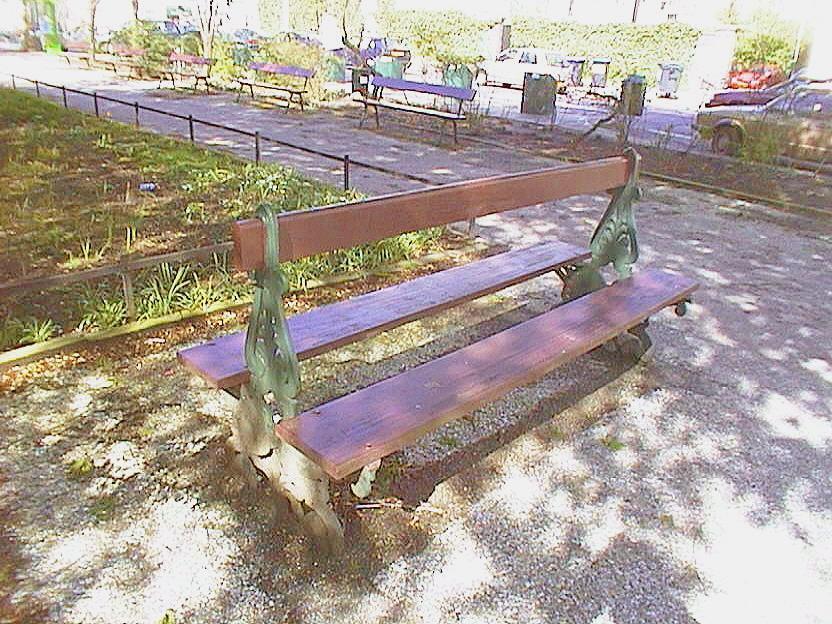 Twee zitbanken van het type dubbelbank uit de tweede helft van de negentiende eeuw bestaande uit een gietijzeren draagstel waarop planken zijn bevestigd voor het zitgedeelte en de rugleuning. De rijk geornamenteerde poten zijn gegoten door ijzergieterij De Prins van Oranje die de bank als tuinbank in haar catalogus had opgenomen. Het is een typisch negentiende-eeuwse bank waarin de hang naar overdadige vormgeving duidelijk tot uitdrukking komt. De dubbelbank werd vroeger ook wel luizenbank genoemd. Men zit op deze bank namelijk met de rug naar elkaar toe zodat de luizen gemakkelijk konden overspringen. De dubbelbanken waren vroeger over de gehele stad verspreid. Nu zijn er nog maar vijf over: drie op het Lange Voorhout en twee op het Nassauplein.