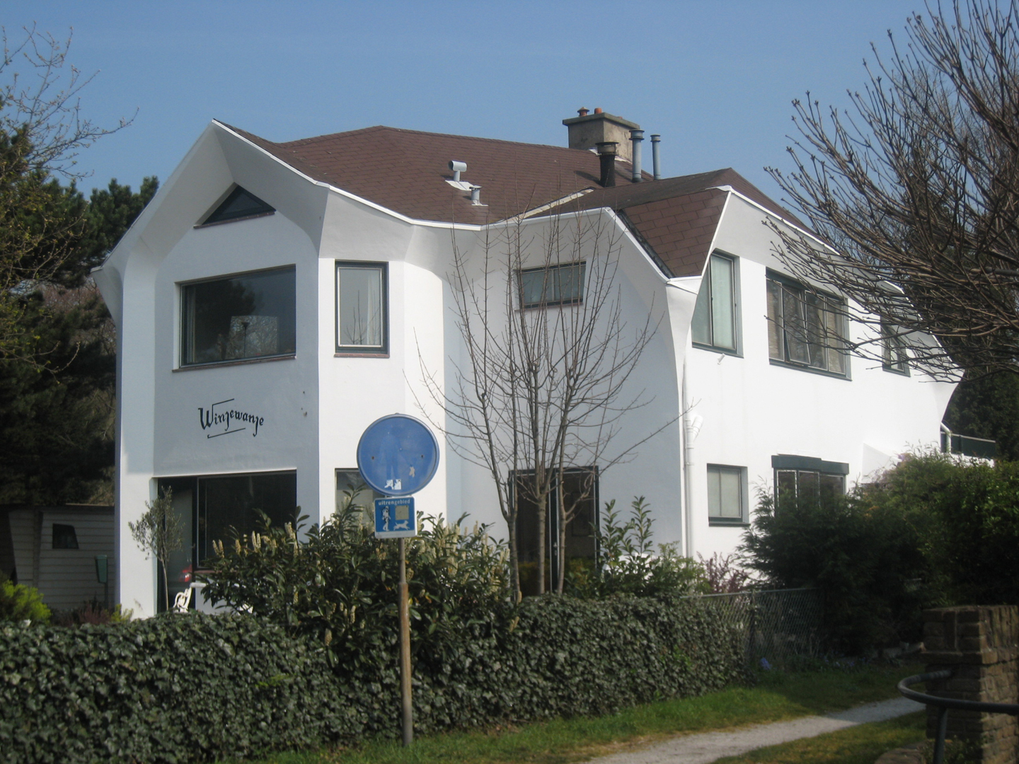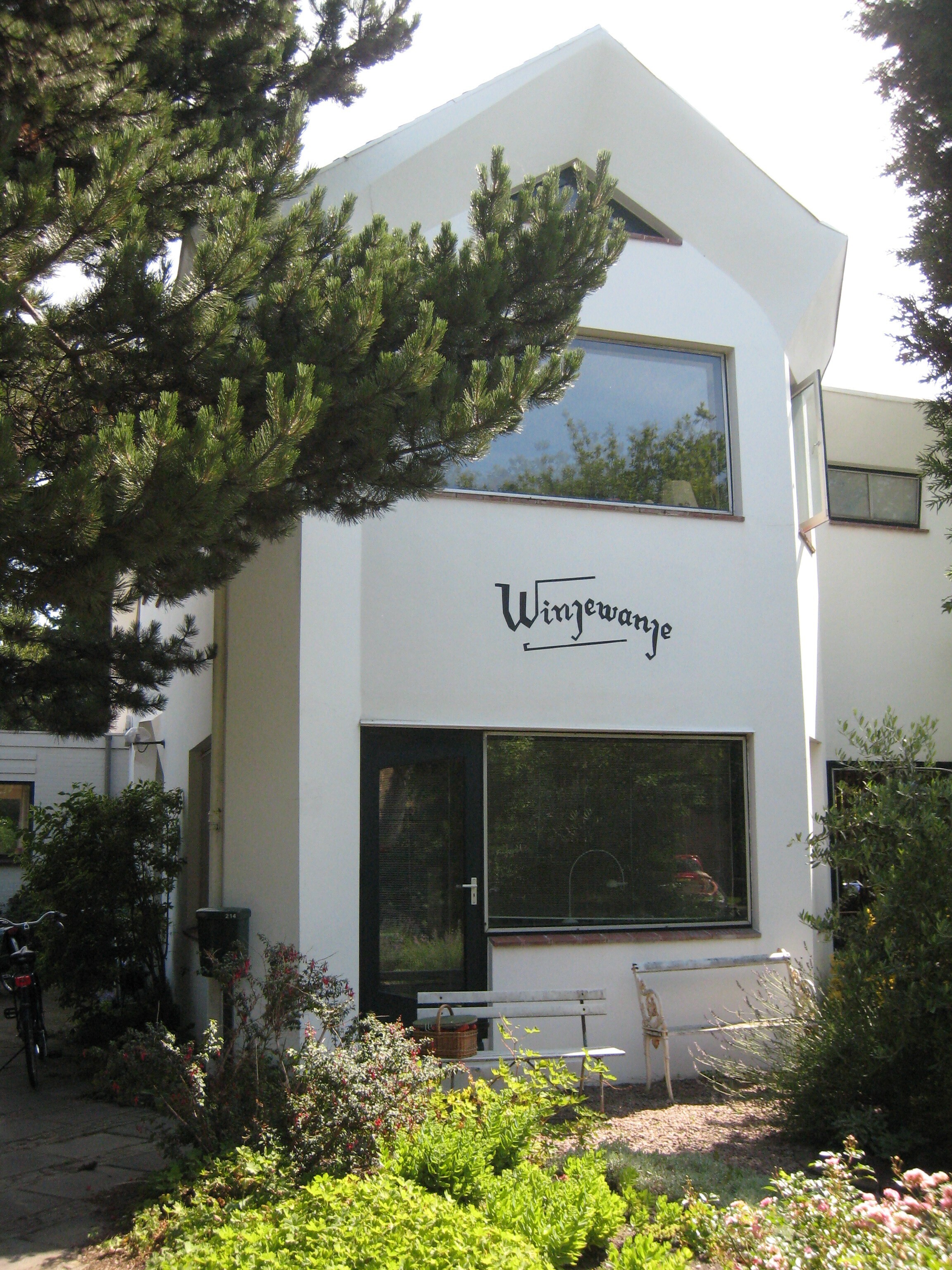 Linkerdeel van de in oorsprong vrijstaande villa genaamd Winjewanje, gebouwd tussen 1924-1927 door de architecten F. Gerretsen en C. Wegerif in antroposofische vormgeving. Naderhand gesplitst in twee woonhuizen. NB. De eenlaagsaanbouwen aan de achterzijde uit de jaren zeventig zijn van bescherming uitgesloten. Omschrijving.