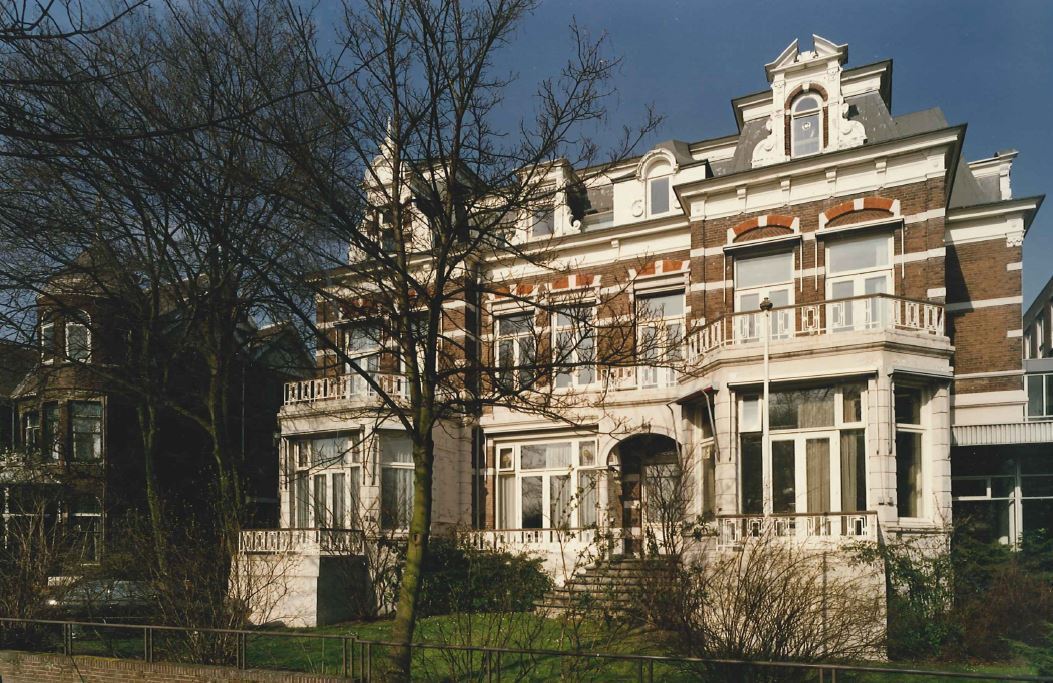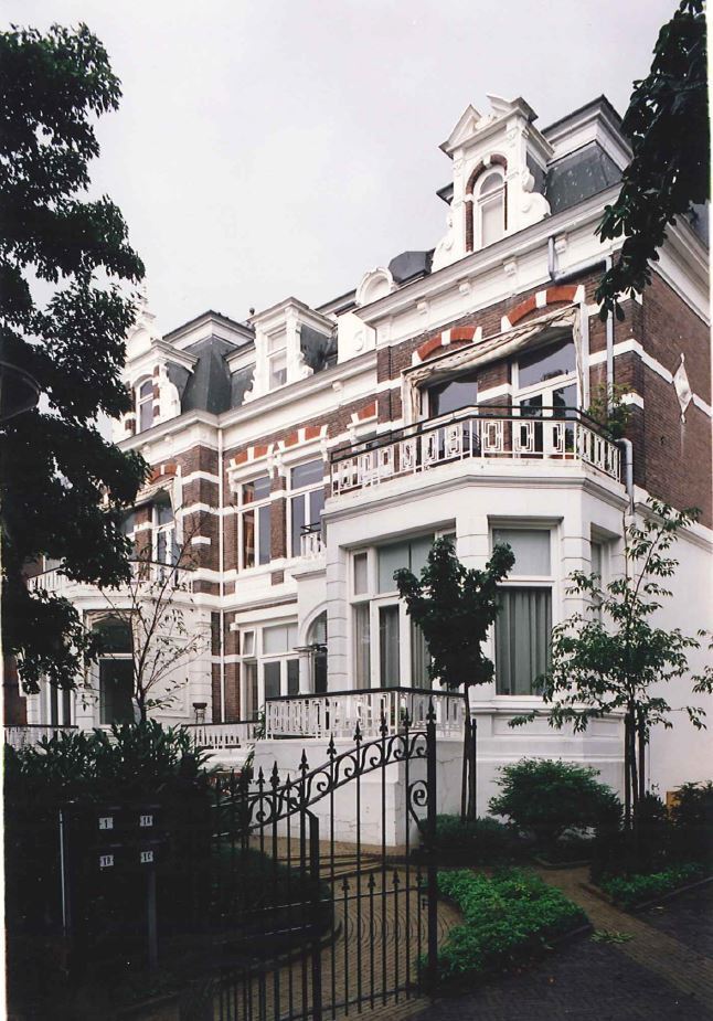 In oorsprong driedubbele villa in neorenaissancestijl uit omstreeks 1895, gebouwd naar ontwerp van A. Jacot en W. Oldewelt. De door een tuin omgeven, thans tot een kantoorpand samengetrokken villa's bestaan uit souterrain, beletage, verdieping en kapverdieping in het Mansardedak. Dit wordt afgesloten door geprofileerde lijsten en bezit dakkapellen met segmentvorrnige en driehoekige frontons en vleugelstukken. De bakstenen gevels worden verlevendigd door gepleisterde banden. Op de hoeken van de voorgevel bakstenen lisenen met gepleisterde blokken; op de hoeken van de achtergevel gepleisterde lisenen. De ontlastingsbogen en vensterstrekken zijn versierd met gepleisterde blokken. In het middendeel van de voorgevel vertonen de vensters van de verdieping onder de ontlastingsbogen lijsten op consoles. Deze vensters bezitten T-ramen. De gevels worden afgesloten door een houten hoofdgestel dat in de risalieten van de voorgevel consoles onder de kroonlijst vertoont.