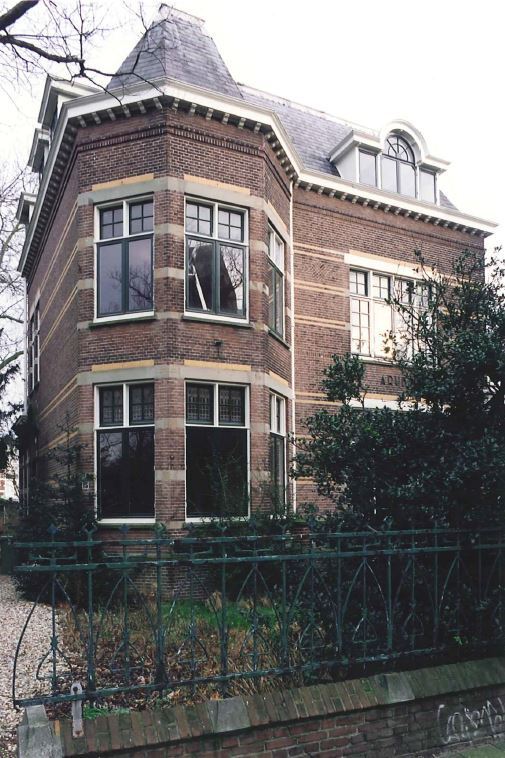 Vrijstaande, door een tuin omgeven villa, genaamd "Aruba" in traditionalistische stijl met invloeden van de Um Achtzehnhundert-beweging, gebouwd naar ontwerp van L.A.H. de Wolf, die in 1912 de bouwtekeningen indiende.