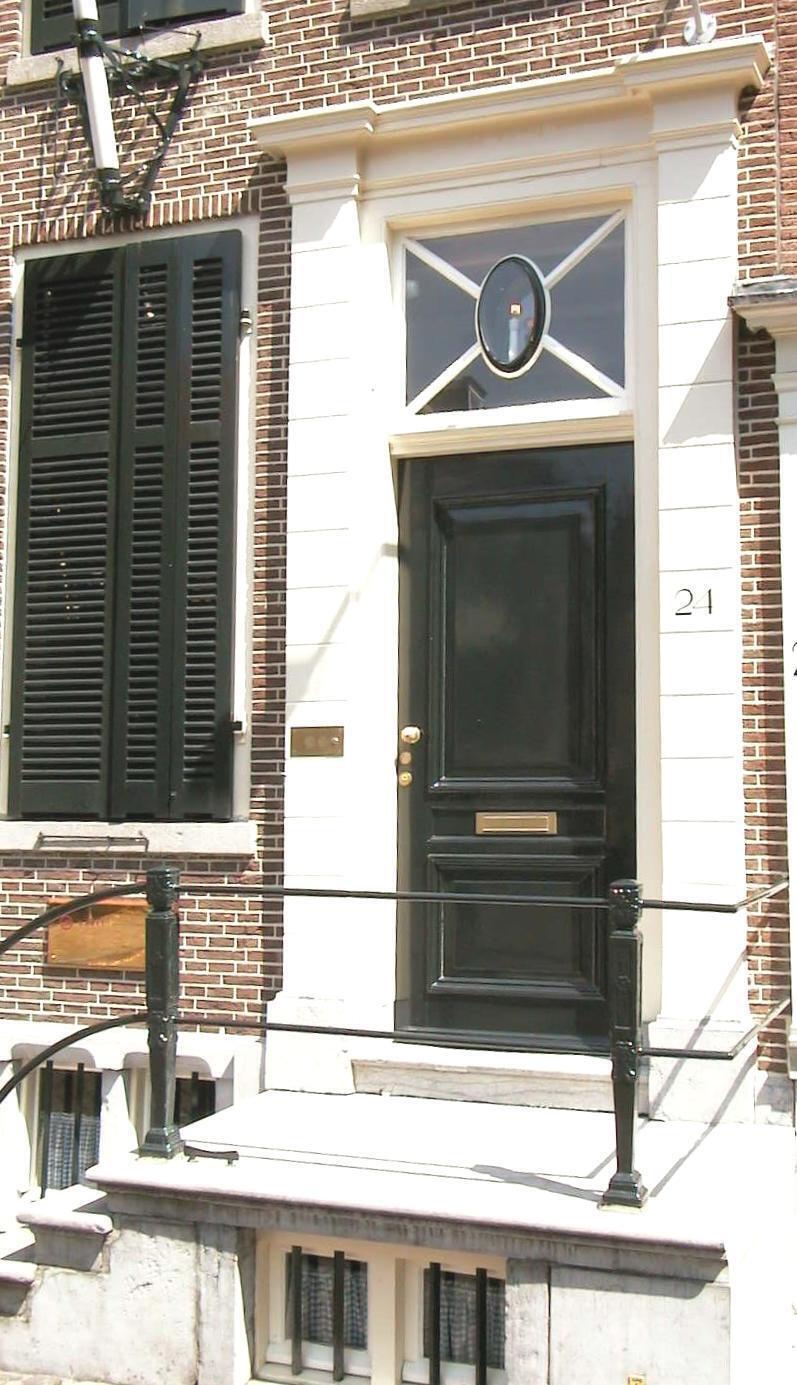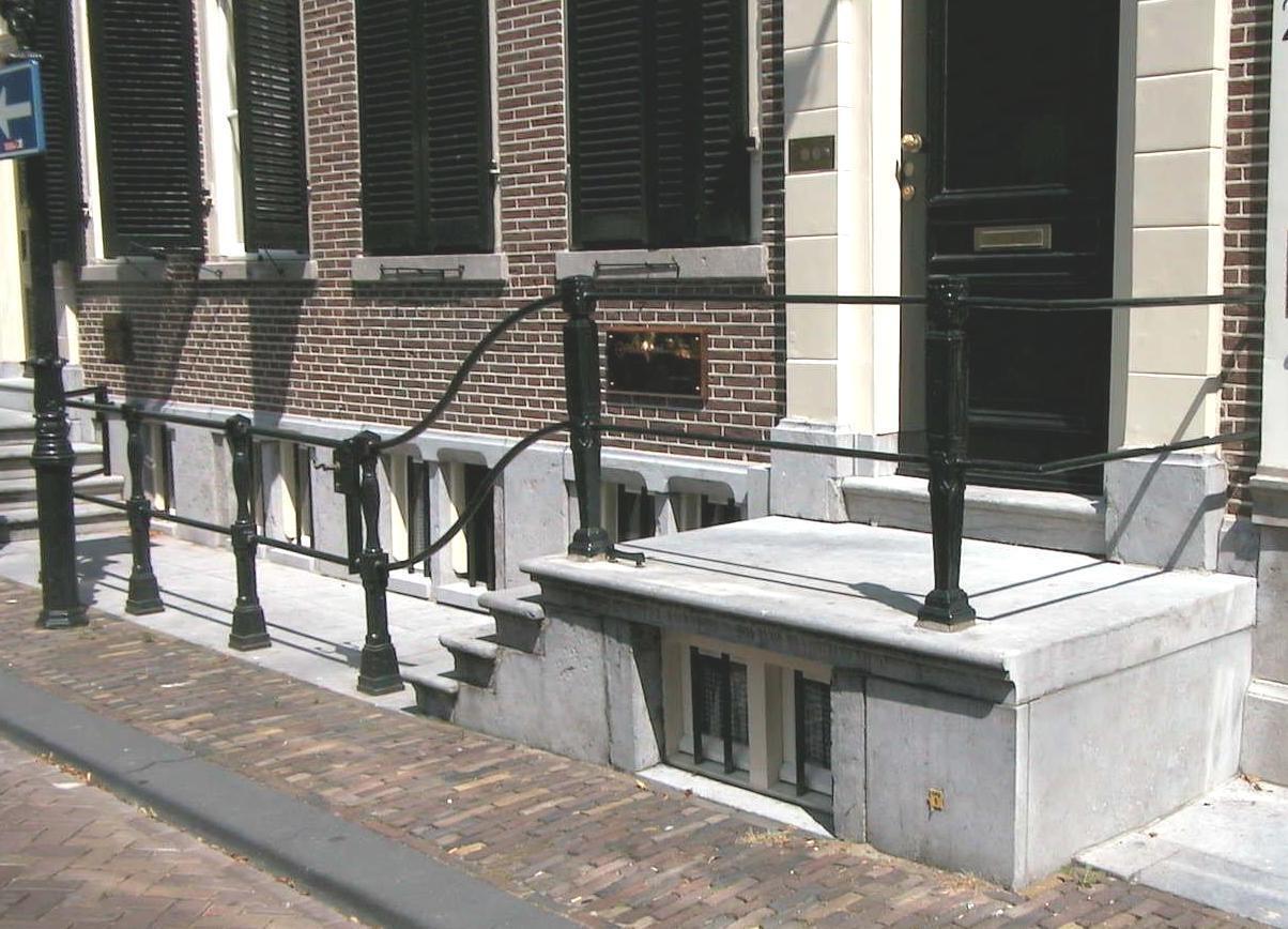 Pand met gevel van omstreeks 1750 met stoep en versierde deurpartij.