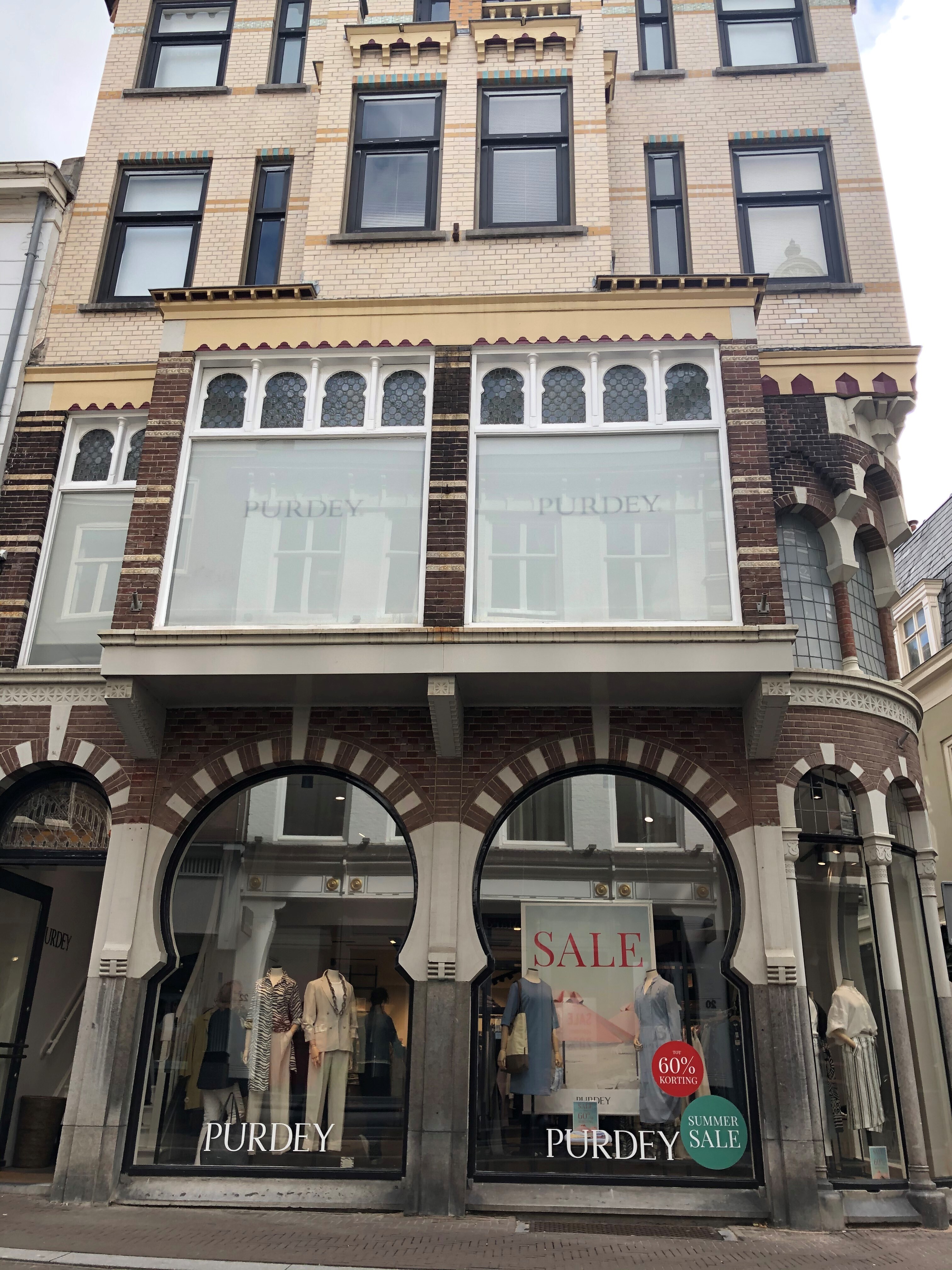 In de kelder van het pand zijn drie glas-in-loodvensters bewaard gebleven die afkomstig zijn van de grote etalagevensters op de begane grond.