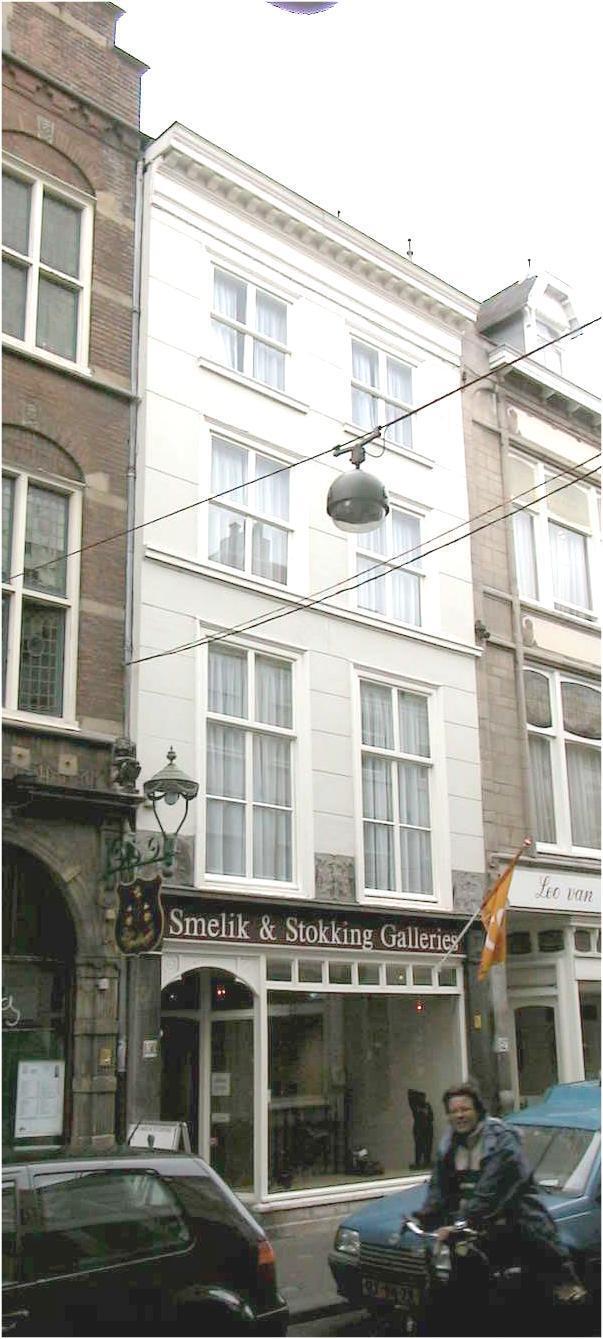 18de-eeuws huis, bestaande uit vier bouwlagen. Breedte: twee vensterassen. Geblokt gepleisterde lijstgevel van 19de-eeuws karakter, waarin vensters met geprofileerde, houten omlijstingen en - in de bovenste twee verdiepingen - vierruitsramen. Winkelpui in Art Nouveau, in de linker penant gesigneerd: "Falkenburg & Co". Boven de puibalk drie gebeeldhouwde gevelstenen met Art Nouveau ornament.
