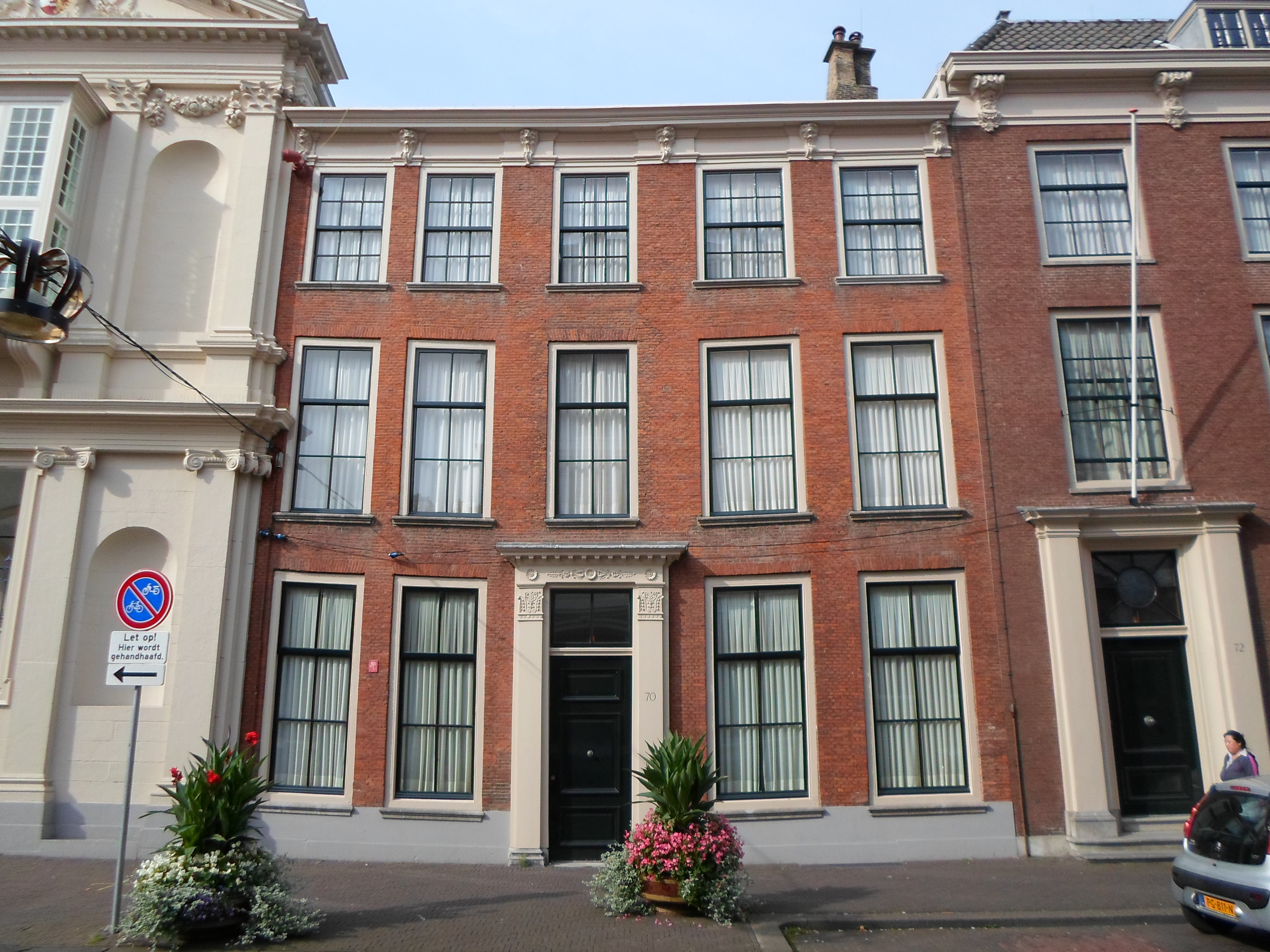 Pand met gevel uit het laatste kwart van de 18e eeuw met versierde ingangspartij. Rijke interieurs in Lodewijk XVI stijl.