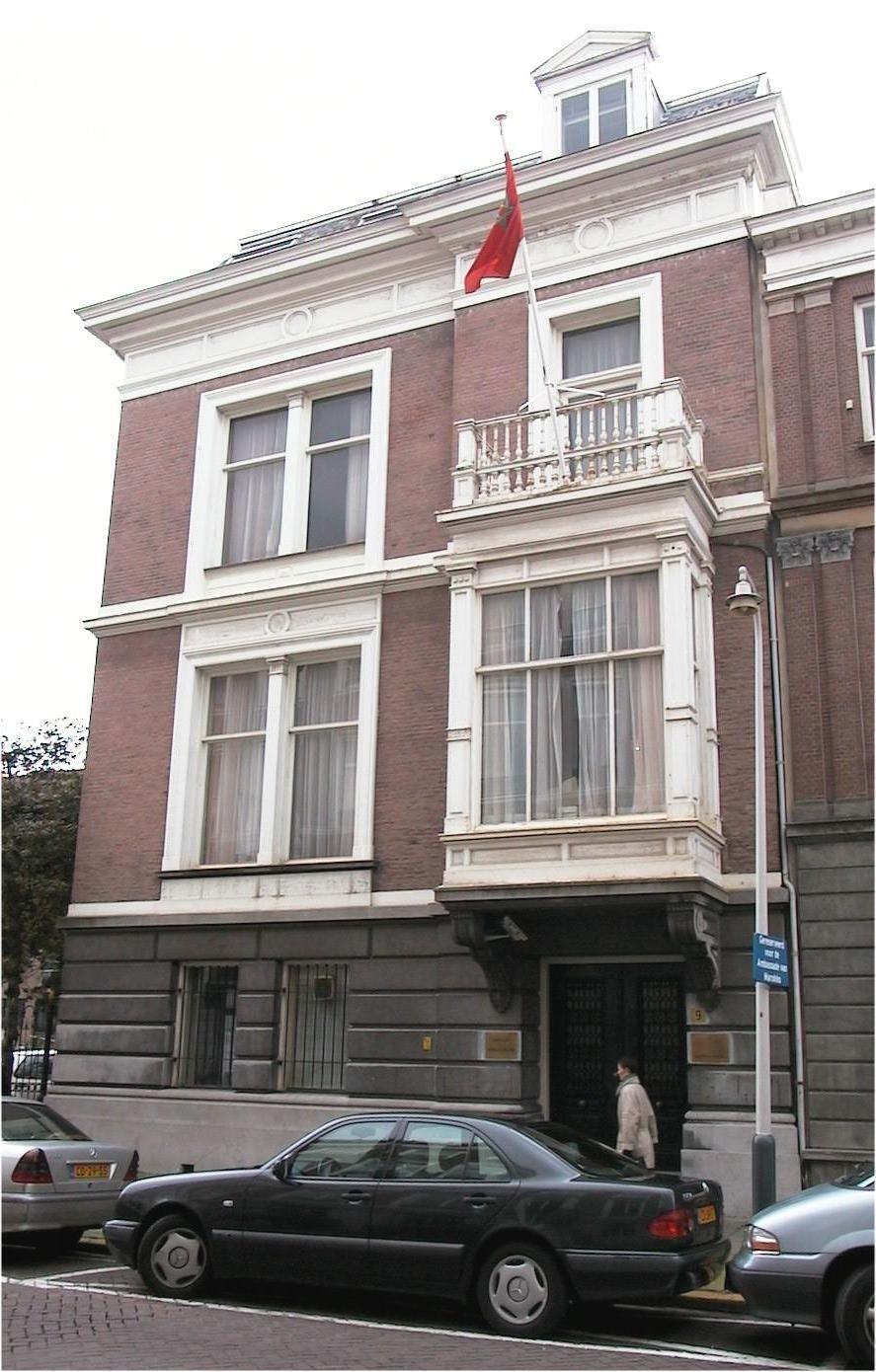 Herenhuis in eclectische trant uit circa 1870 op de hoek van de Oranjestraat en de Paleisstraat. Het pand telt drie bouwlagen en een omlopend schilddak. De lage parterre is in hardsteen gebosseerd. Boven de ingang met authentieke vleugeldeur aan de Oranjestraat een erker op hardstenen, gebeeldhouwde consoles. Aan de zijde van de Paleisstraat een driezijdige erker tegen parterre en belétage. Beide erkers worden bekroond door houten balustrades. De meeste vensters zijn gekoppeld in tweelichtskozijnen; de houten vensteromlijstingen zijn geprofileerd. Gietijzeren tuinhek met denneappelbekroningen, op gemetselde voet.