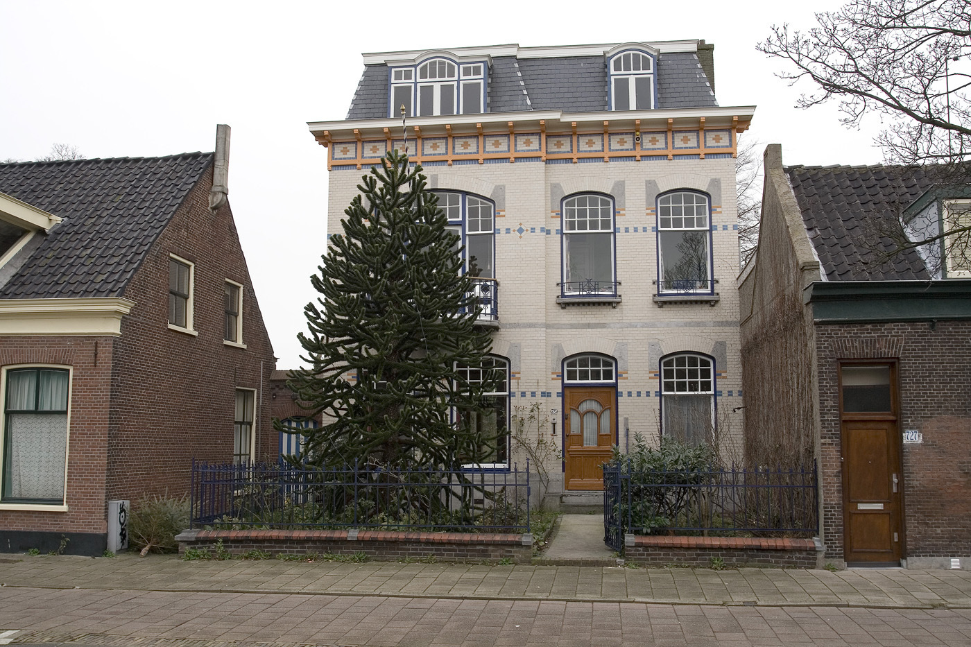 Vrijstaande voormalige tuinderswoning uit 1907, gebouwd in opdracht van tuinder E. Flinterman naar ontwerp van aannemer J. van Rossum in Art Nouveau.
