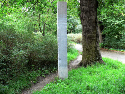Hardstenen grenspaal uit de negentiende eeuw bedoeld voor de afbakening van het privé jachtterrein van de koning van Nederland.