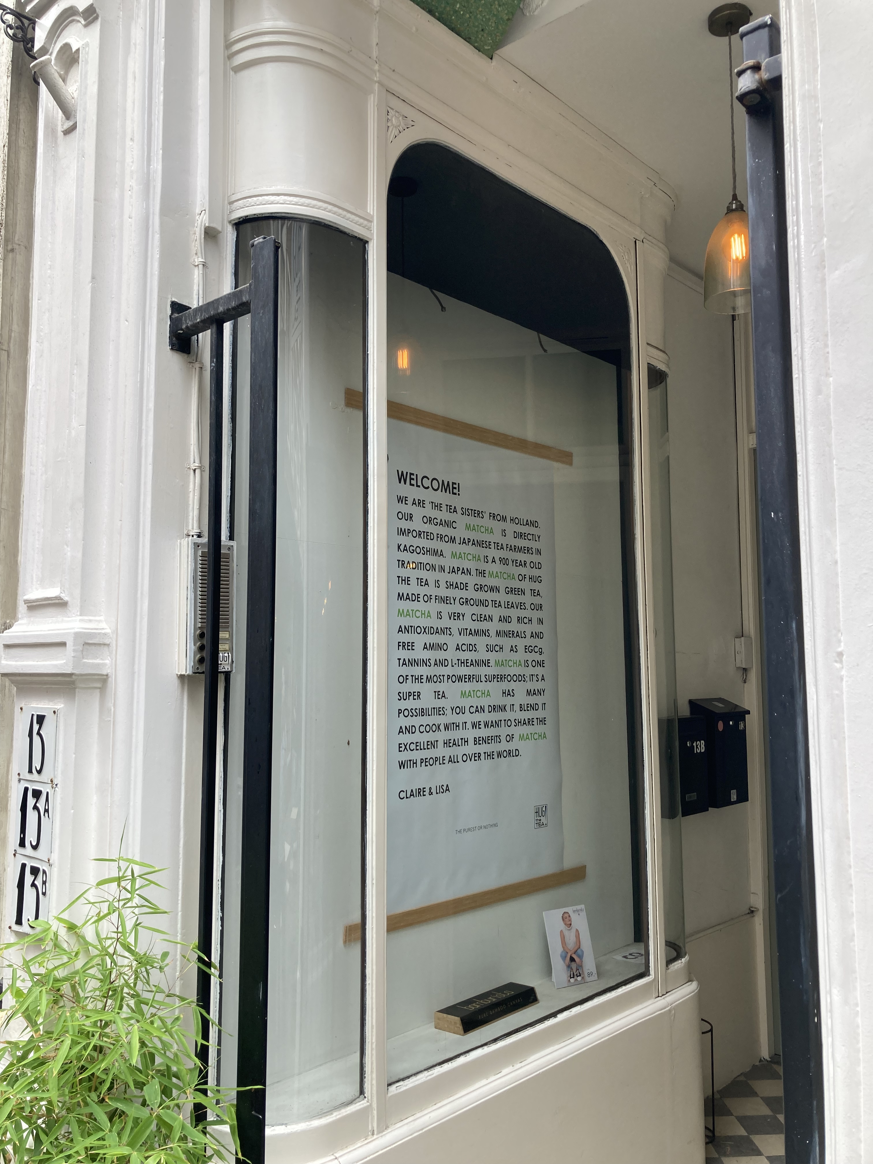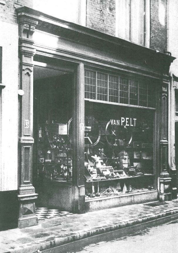 Het pand heeft een achttiende-eeuwse voorgevel in schoonmetselwerk en telt drie bouwlagen. De winkelpui is zoals blijkt uit een jaartalsteentje in 1879 gerealiseerd en bestaat uit een forse etalage met daarnaast een diep portiek met etalagekast. De vensters op de verdiepingen hebben een laat achttiende- of negentiende-eeuwse roedeverdeling.