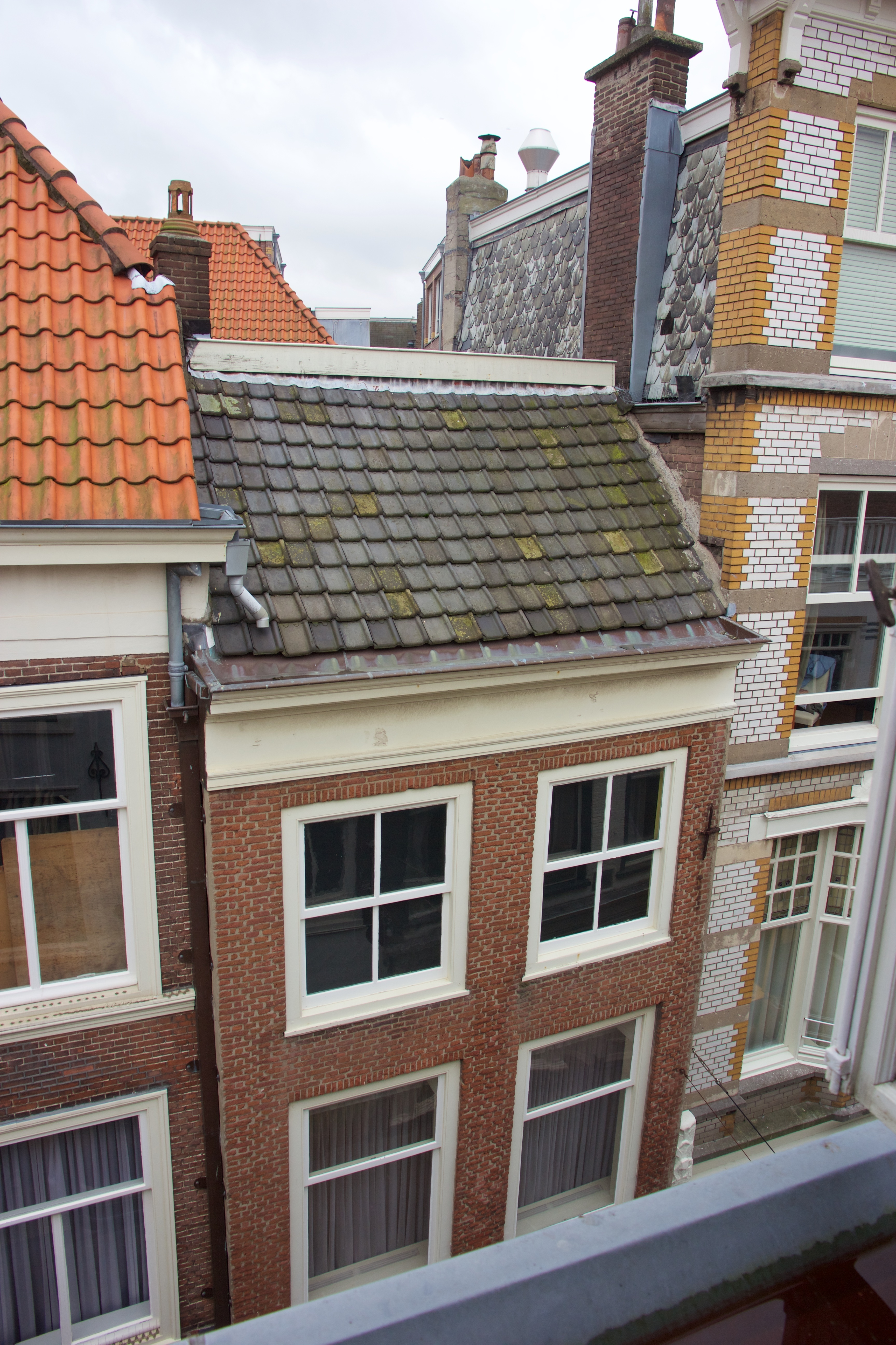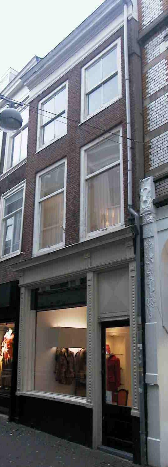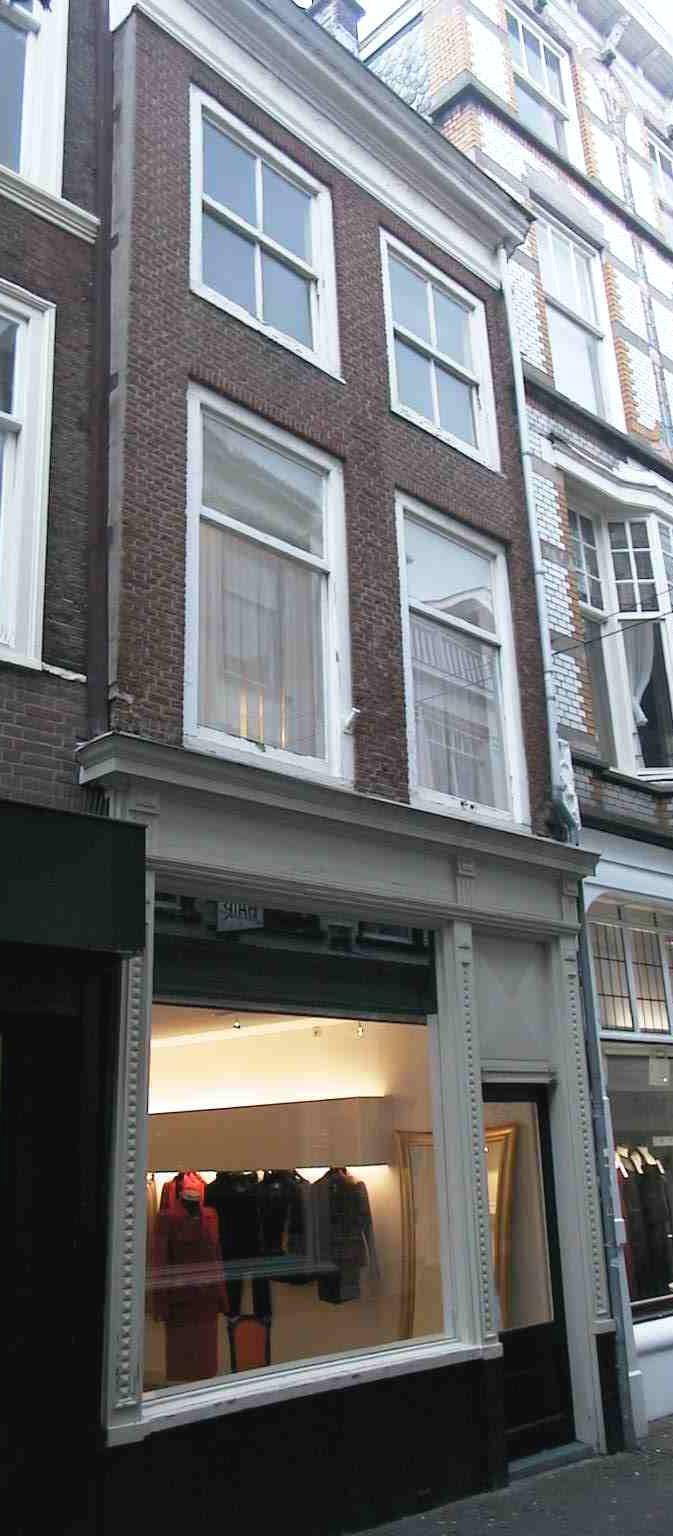 Achttiende eeuws pand met twee-assige lijstgevel en bestaande uit parterre en twee verdiepingen. Vensters onder rollagen, vierruitsschuiframen op de 2e verdieping. Winkelpui met eenvoudige kroonlijst.