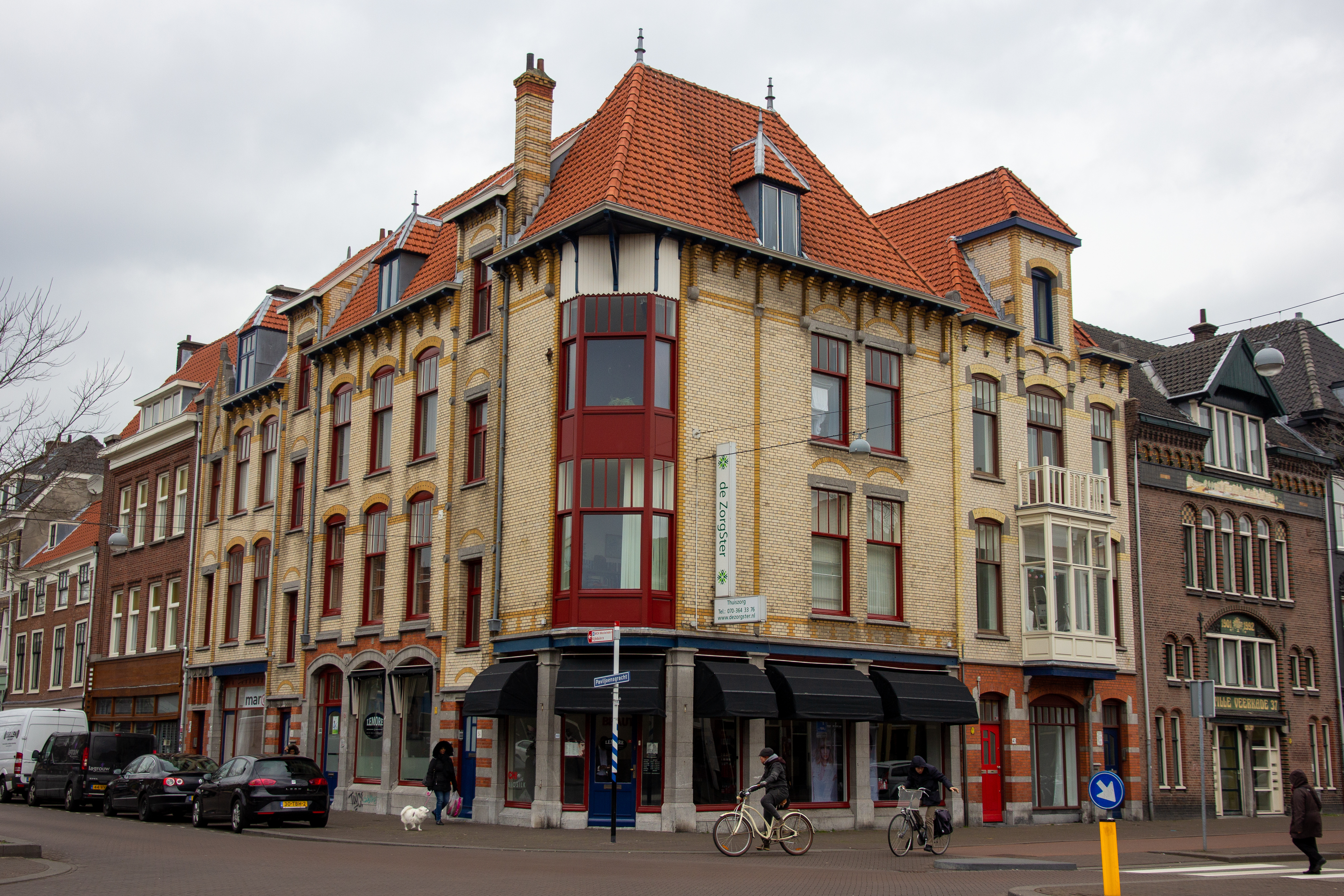 Hoekpand met winkel en bovenwoningen in Jugendstil-trant. Het uit 1907 daterende ontwerp is van J. Olthuis en werd uitgevoerd door de bouwkundige C.J. van de Zijden.