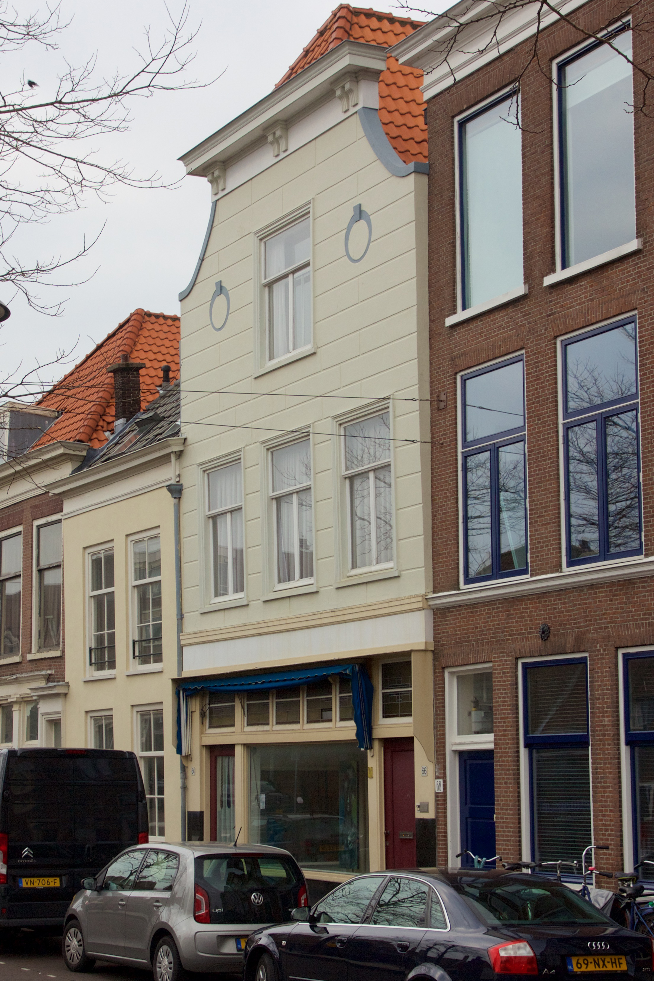 Pand uit de 17de eeuw met hoog, afgewolfd schilddak en gepleisterde