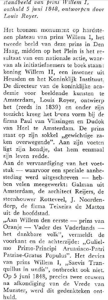 Standbeeld van Prins Willem I te voet uit 1848 door L. Royer, van algemeen belang wegens oudheidkundige en kunsthistorische waarde.