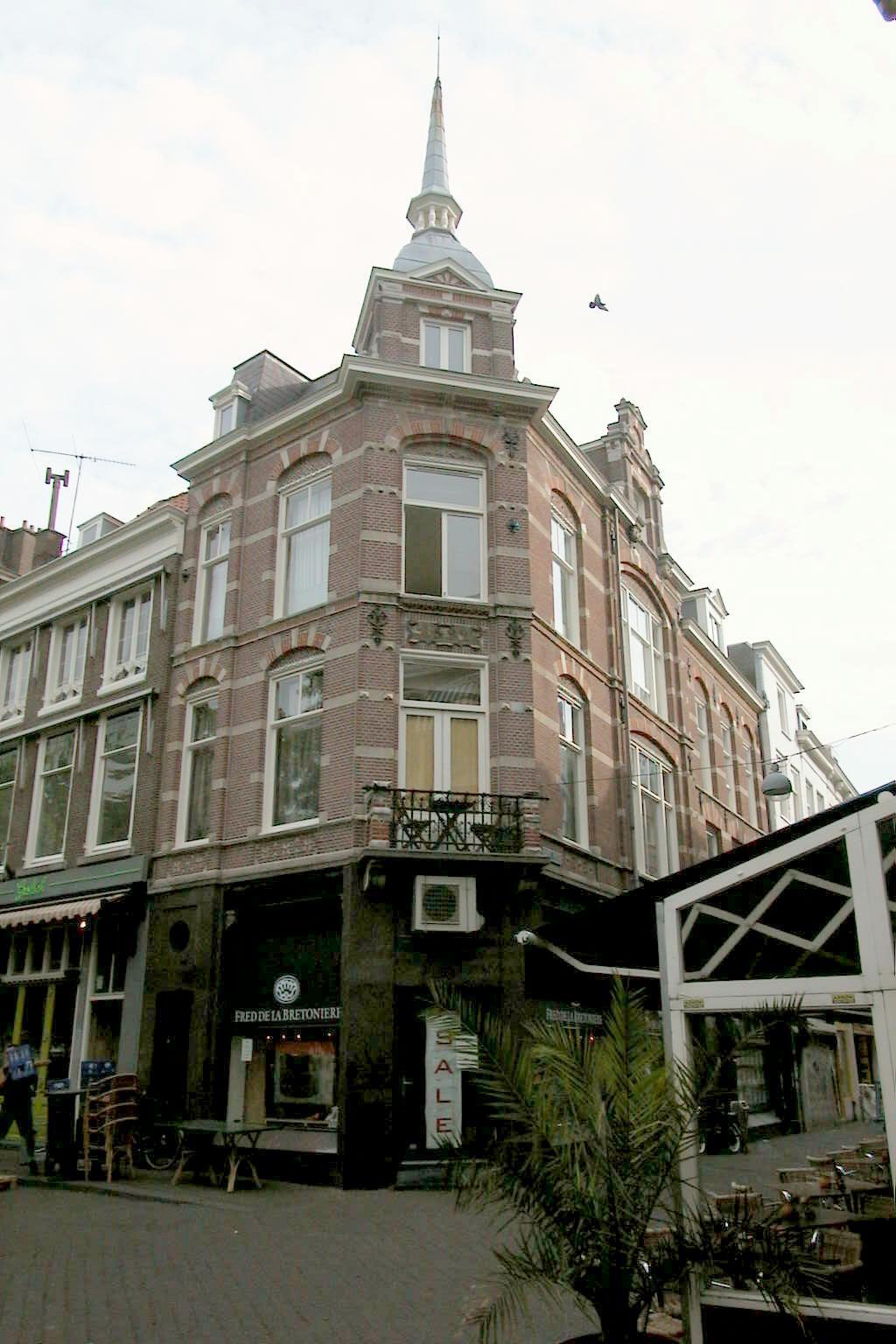 Als winkel-woonhuis ontworpen pand uit 1892 in neo-renaissancestijl bestaande uit drie bouwlagen onder een kapverdieping. Het pand is gelegen op de hoek van de Korte Poten en het Plein.