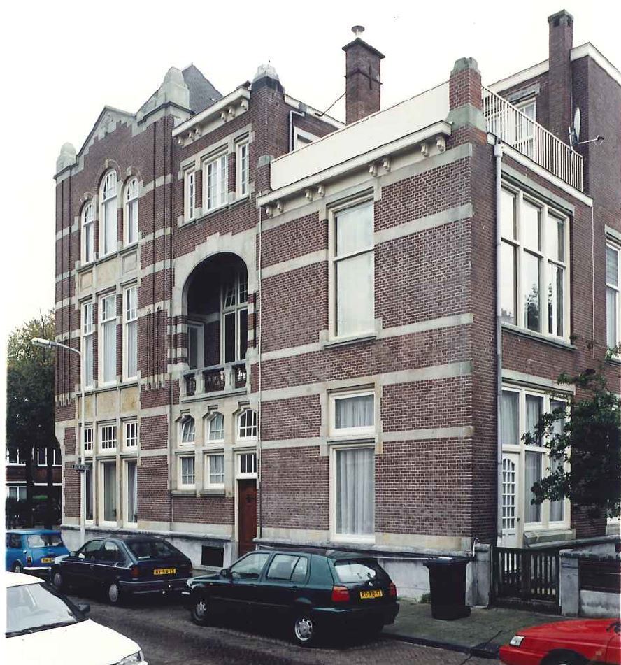 Pand uit 1912 van de architect M. Kuijper Czn, deels twee deels drie bouwlagen met kapverdiepingen. In het zeer persoonlijke ontwerp is voor de vormgeving en het materiaalgebruik gebruik gemaakt van kenmerken uit verschillende stijlperioden (neo- "Um.-1800" beweging).