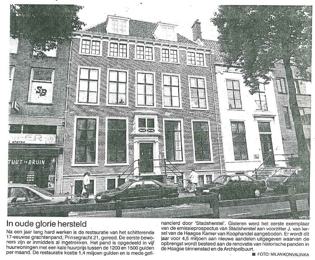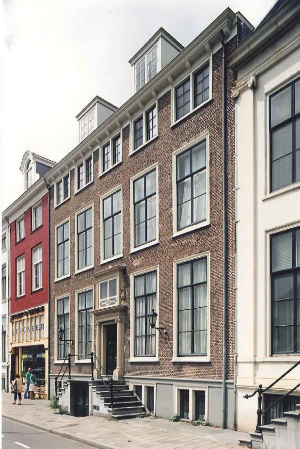 Pand met bakstenen gevel van plm 1650 op hardstenen plintstoep en versierde ingangspartij.