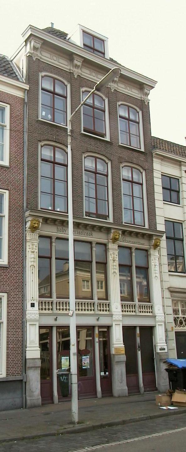 Pand met Lodewijk XIV gevel met kroonlijst op gesneden consoles, onderpui ingrijpend gewijzigd.