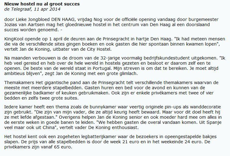 2014-04-11: De Telegraaf inzake hostel IMAGE 123 KB