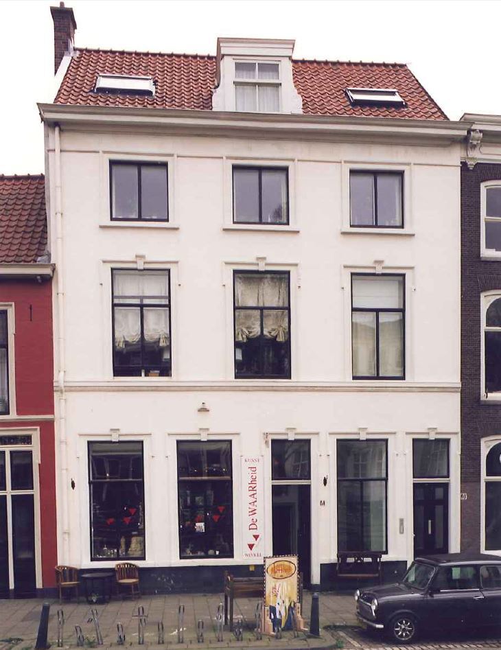 Achttiende eeuws pand met een gepleisterde lijstgevel van 19de eeuws karakter ter breedte van drie vensterassen. Het gebouw bestaat uit een parterre en twee verdiepingen onder een dwars zadeldak waarin een dakkapel met voluutstukken. Op de parterre en eerste verdieping geprofileerde vensteromlijstingen net zg. "oren" en siersteen. In de vijf-assige ondergevel twee ingangen.