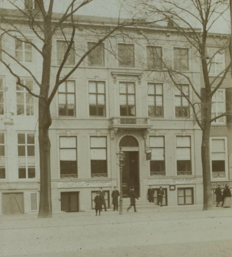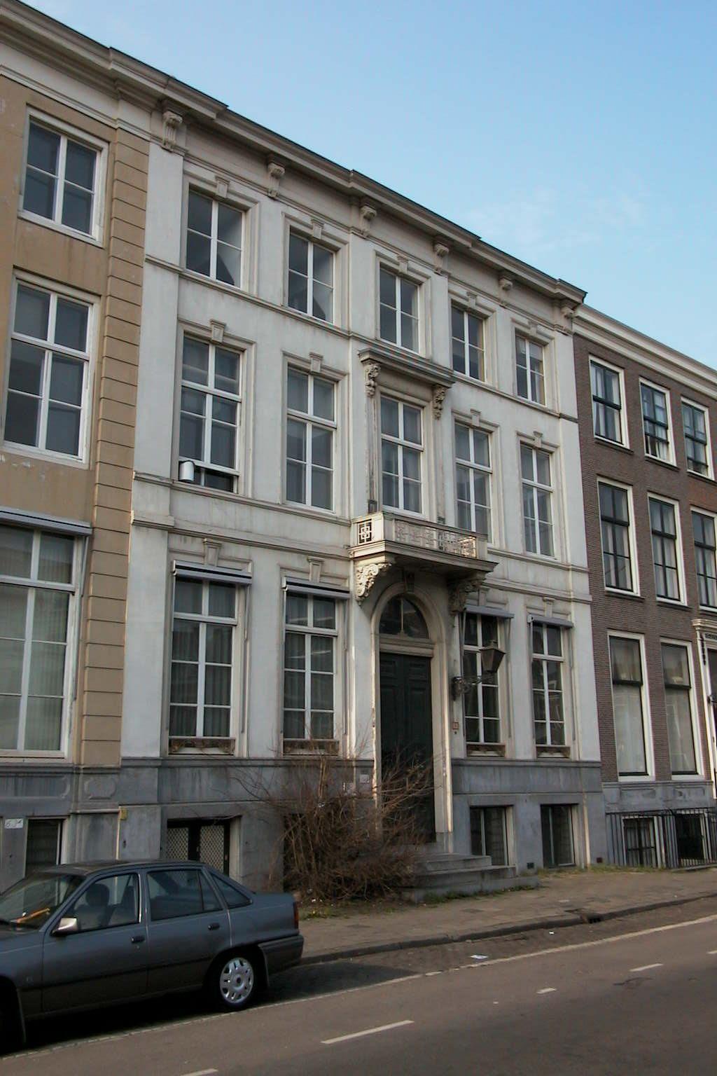 Pand met gevel uit het tweede kwart van de 19e eeuw met kroonlijst op gesneden consoles.