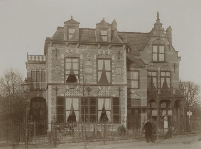 Rechterhelft van twee geschakelde herenhuizen uit 1887-1890, gebouwd door architect J.J. van Nieukerken in neo-renaissance stijl.