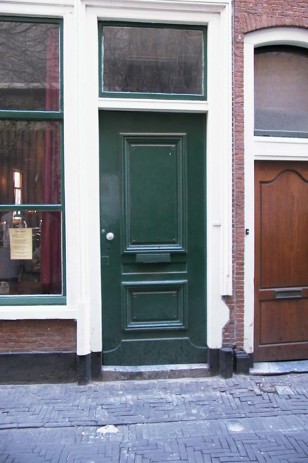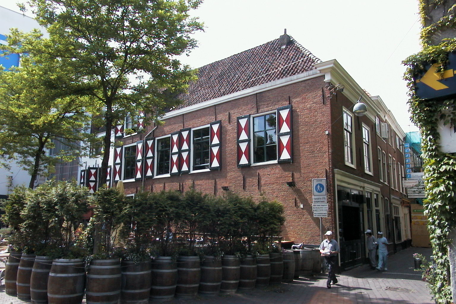 Hoekpand ter breedte van twee vensterassen, bestaande uit parterre en verdieping. In de lange zijgevel vijf vensters met zesruitsschuiframen en één met vierruitsschuiframen, alle met luiken. Drie ronde vensters. Het pand dateert in oorsprong uit de 17de eeuw. Aan de Raamstraat lijst- gevel met houten onderpui, waarin inrijdeuren en rechts een zesruitsraam waarnaast panelendeur met bovenlicht, alles onder één puibalk. In de verdieping twee vensters met zesruitsschuiframen.