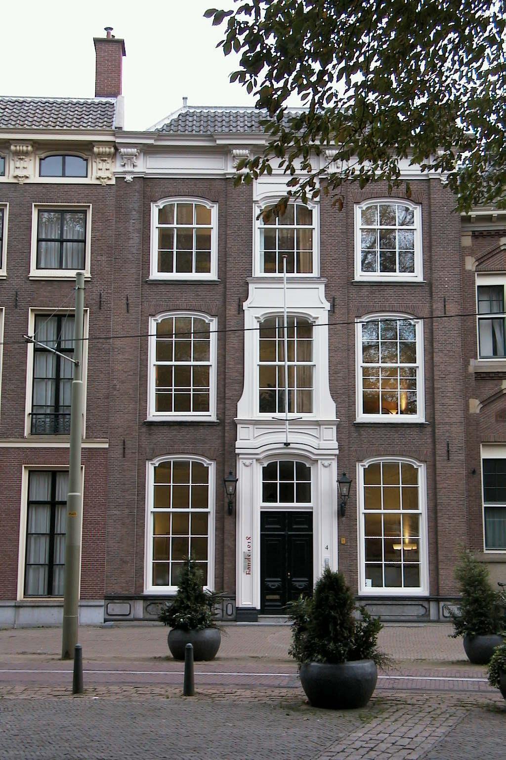 Pand met voor- en achtergevel in Lodewijk XIV stijl met kroonlijst op gesneden consoles en versierde middenrisaliet.