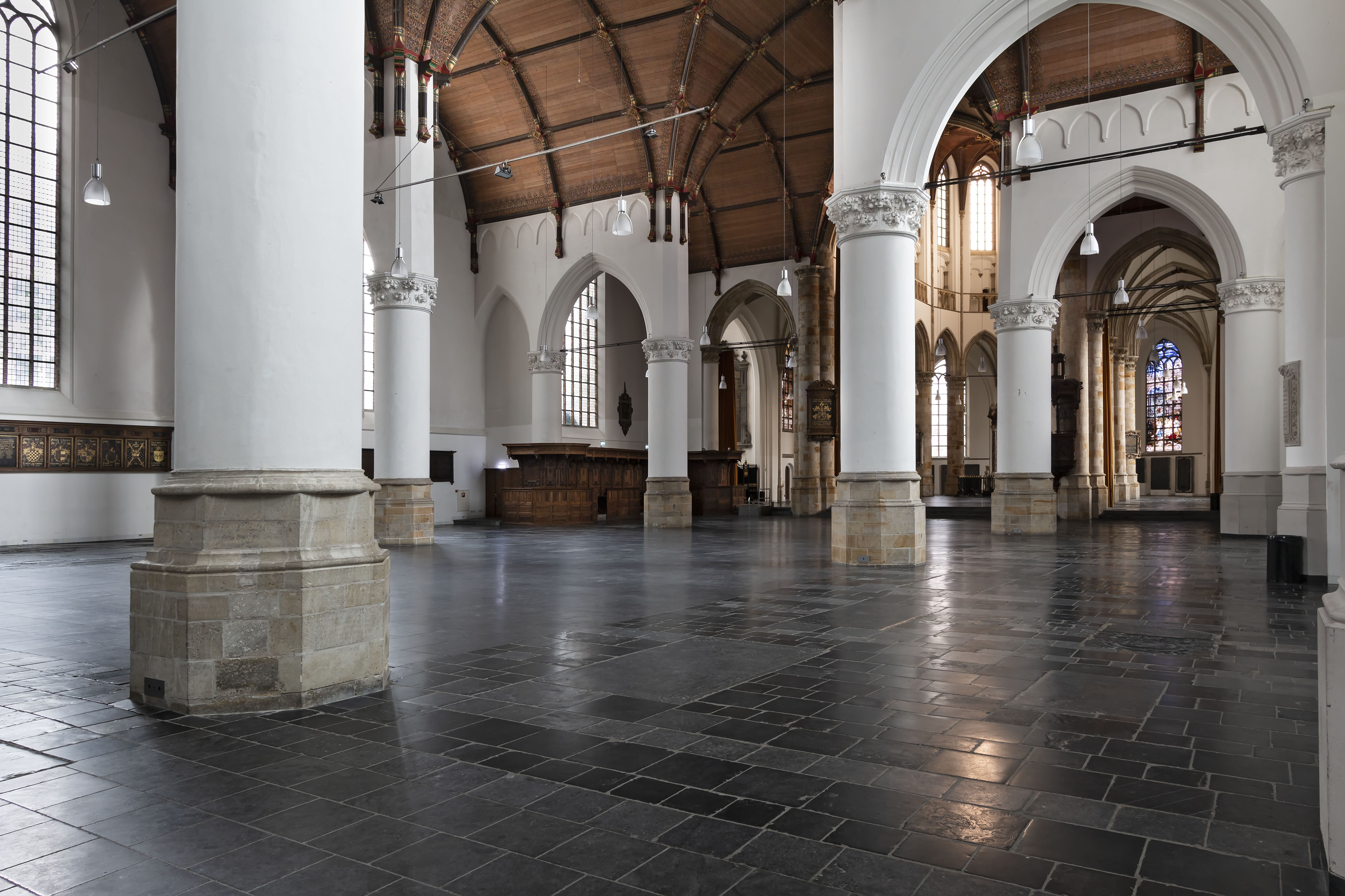 Laat-gotische kerk, bestaande uit een zeszijdige toren, schip met dwarse zijkapellen en een hoog basilicaal koor. Preekstoel van 1550 met rijk snijwerk, vroeg renaissance graftombe voor Gerrit van Assendelft en zijn vrouw, grafmonument voor Jacob van Wassenaar-Obdam uit 1667 door B. Eggers, monument voor Philips van Hessen-Phlipsthal, een aantal epitafen en zerken, 34 panelen met wapens en namen van ridders van het Gulden Vlies, wapenborden, gebrandschilderde glazen.