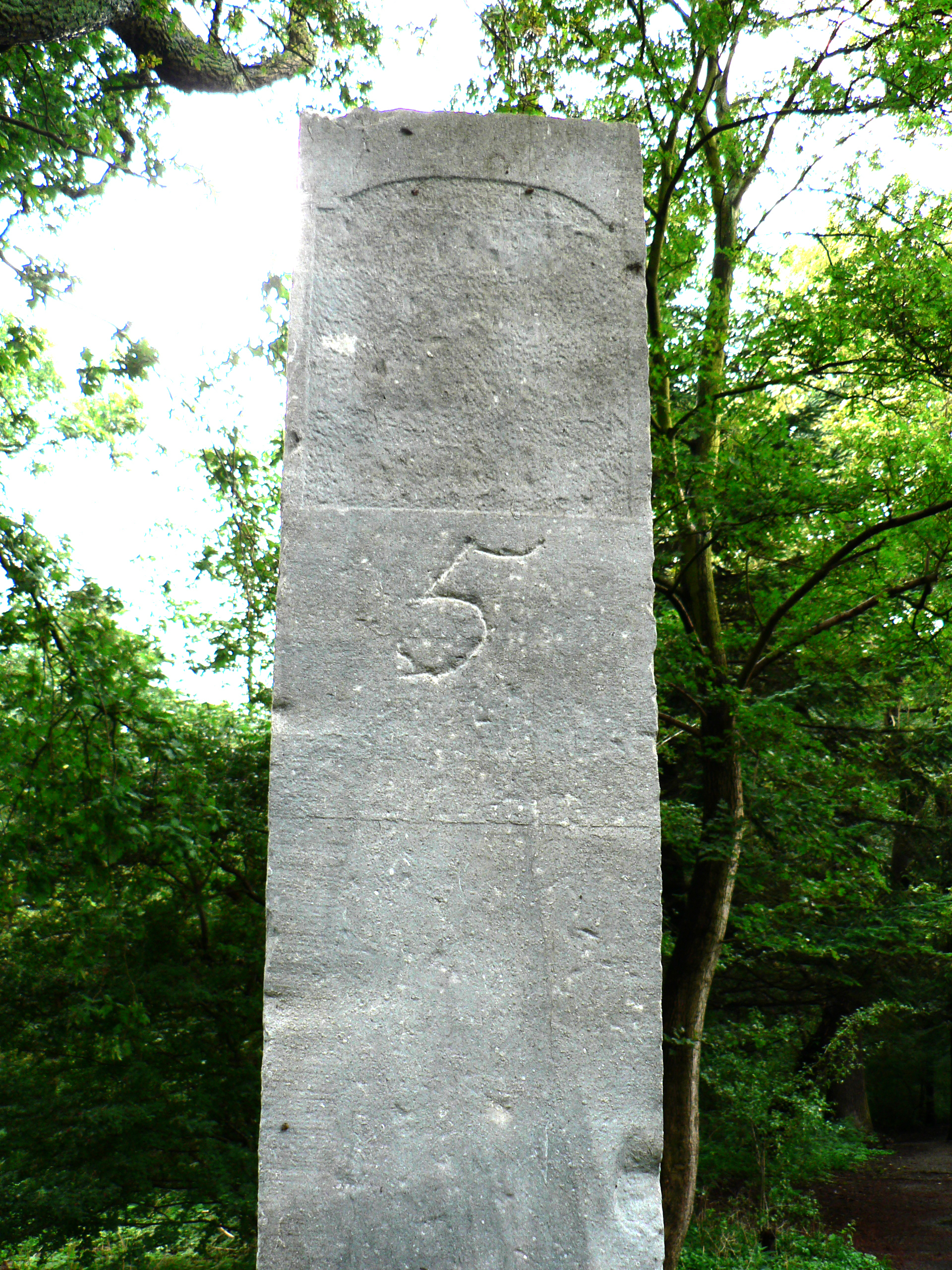 Hardstenen grenspaal uit de negentiende eeuw bedoeld voor de afbakening van het privé jachtterrein van de koning van Nederland.