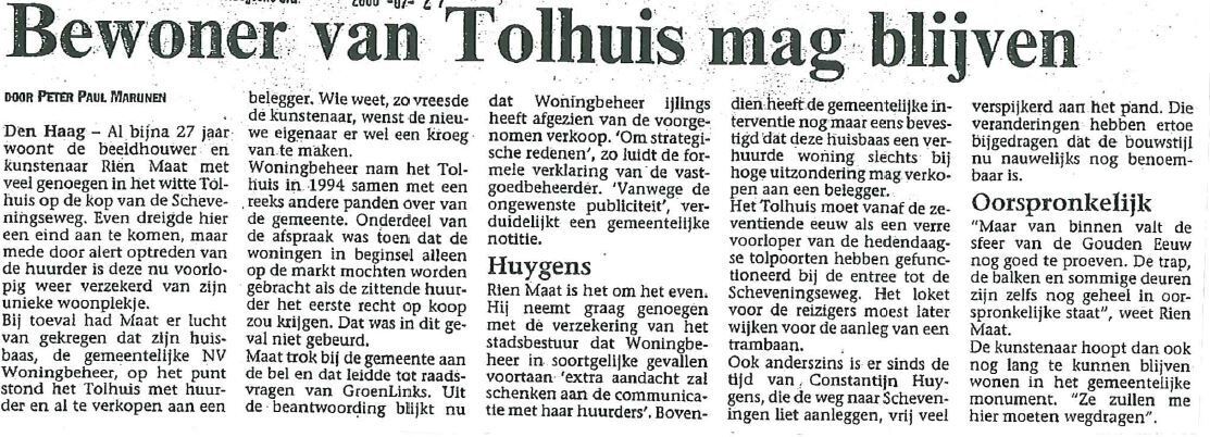 Witgepleisterd in oorsprong 17de-eeuws pand, haaks op de Scheveningseweg, in de huidige vorm ter lengte van drie brede traveeën, bestaande uit een kelder, twee bouwlagen en een kapverdieping in het met pannen gedekte zadeldak dat aan de zijde van de Joodse Begraafplaats is afgewolfd. In de oorspronkelijke toestand telde het Tolhuis aan de zijde van de Scheveningseweg twee vensterassen meer en vertoonde de naar deze weg gekeerde gevel een arcade met rondbogen op pijlers met impostlijsten. Bij de aanleg van de paardetramlijn naar Scheveningen in 1864 werd het pand met een travee ingekort en in het begin van de twintigste eeuw werd nogmaals een travee opgeofferd aan de spoorverdubbeling ten behoeve van de electrische tram. De huidige façade met puntgevel en zoldervenster met houten kruiskozijn en luiken dateert van die verbouwing. De vensters in de andere gevels bezitten merendeels negenruitsschuiframen uit de eerste helft van de 19de eeuw. De naar de Burg. Patijnlaan gekeerde lange gevel heeft tegen de linker travee een uitgebouwd portaal onder zadeldakje en daarboven een rond venster met gietijzeren harnas, beide daterend van de verbouwing in 1864. De lage uitbouw onder een schilddakje tegen de lange gevel aan de Scheveningse zijde dateert van de verbouwing in het beging van de 20ste eeuw. In de drie oorspronkelijke gevels bevinden zich staafankers. Inwendig bezit het huis een opkamer boven de 17de-eeuwse overwelfde kelder, een 17de-eeuwse trap met forse, houten balusters, deuren en deuromlijstingen van kelder en opkamer uit de 17de of l8de eeuw en een l7de-eeuwse strokendeur met oorspronkelijk hangwerk als toegang tot de zoldertrap. De kap is in de huidige vorm waarschijnlijk 18de-eeuws. Het pand werd gerestaureerd in 1984-1985. Het tolhek, dat in 1665 nabij het Tolhuis aan het begin van de Scheveningseweg werd geplaatst, is in 1924 naar de Kerkhoflaan overgebracht.