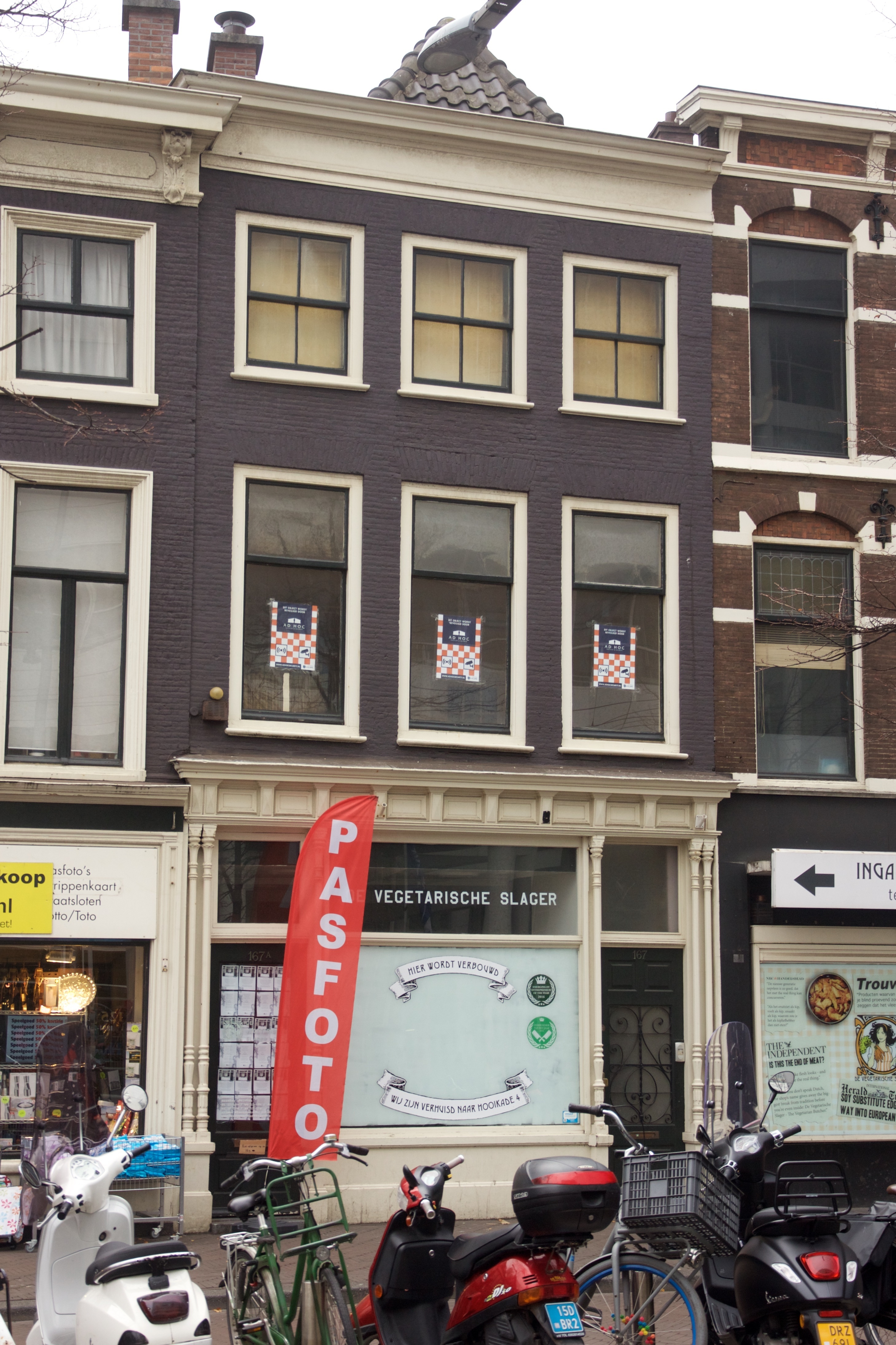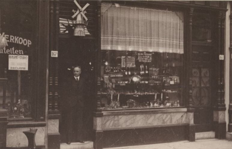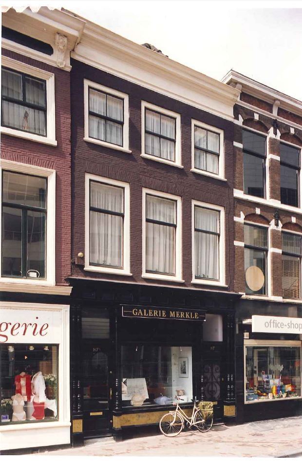 In oorsprong 17de eeuws pand met lijstgevel ter breedte van drie venster- assen. Drie bouwlagen onder schilddak. Houten winkelpui met colonnetten uit het derde kwart van de 19de eeuw. Achterhuis met afgewolfd schilddak en achtergevel met afgeschuinde zijkanten. Vermoedelijk vroeg-19de eeuwse aanbouw met twee Empire ramen. Het deel achter het buurpand 169/169a (genummerd 169b) heeft een midden 19de eeuws karakter en valt buiten de bescherming.