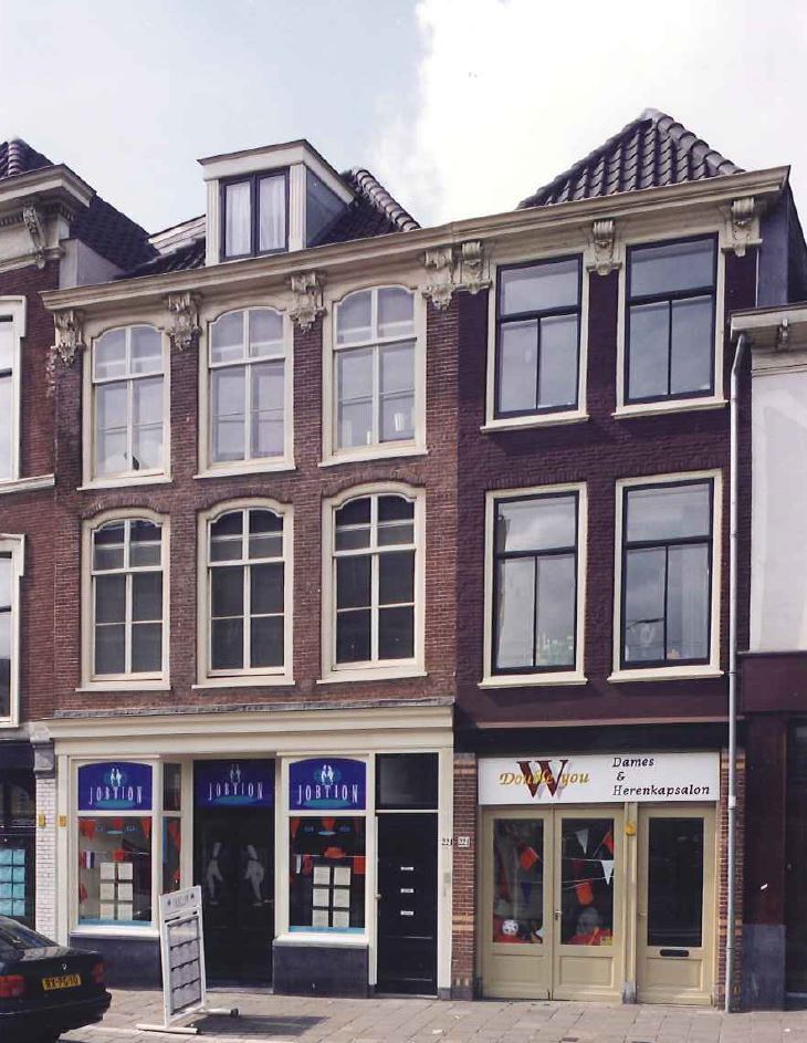 Pand uit de 17de of 18de eeuw ter breedte van twee vensterassen, bestaande uit parterre, twee verdiepingen en schilddak. Wit gesausde gevel onder rechte houten kroonlijst, tweede kwart 18de eeuw, met drie gesneden Lodewijk XIV consoles.