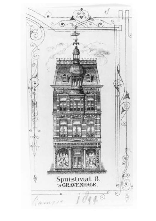 De Spuistraat is als sinds de late middeleeuwen een straat waar bedrijvigheid en handel waren geconcentreerd. Rond 1850 doet het winkelconcept zoals wij dat nu kennen haar intrede en worden veel woonhuis- en bedrijfspuien in de bestaande bebouwing vervangen door winkelpuien. De voortschrijdende cityvorming van de binnenstad en daarmee het alsmaar belangrijker worden van de winkelfunctie voor de Spuistraat zorgt ervoor dat vanaf 1875 veel van de oude panden wordt gesloopt of zodanig verbouwd dat er sprake is van een forse metamorfose. De nieuwe winkel-woonpanden panden zijn veel hoger en late de rijke schakering zien van de snel opvolgende architectuurstijlen vanaf 1880 tot aan het Interbellum. Spuistraat 8 is hiervan een goede representant.