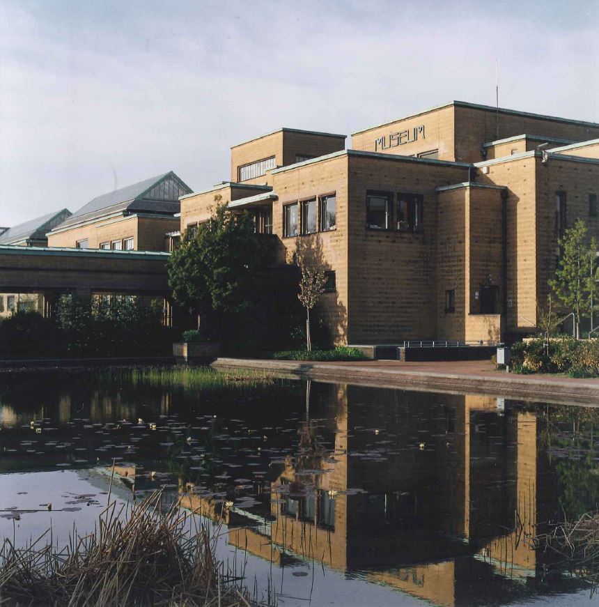 Museumgebouw op complexe plattegrond, opgebouwd uit ten opzichte van elkaar verspringende bouwvolumes van verschillende hoogtes, deels onder platte daken en deels onder glazen kappen. De draagconstructie is van gewapend beton, die bekleed is met gele baksteen. Aan het expressieve metselverband is af te lezen, dat deze een bekledende en geen constructieve functie vervult. De betonconstructie is in het interieur grotendeels in het zicht gelaten; Deuren en vensters zijn van brons. De betonnen gootlijsten en bovenlateien zijn met koper bekleed. Eveneens van koper zijn de hemelwaterafvoeren. In de rechtervleugel zijn de grote hal met trappenhuis, dienstruimten en auditorium opgenomen. De diverse ruimten zijn door hun kubistische opbouw vanaf de buitenzijde als duidelijk van elkaar te onderscheiden bouwblokken waarneembaar. Architectonisch hoogtepunt is de grote hal gepleisterd in terra nova met terugliggende gekleurde tegels tussen de muurvlakken van de betonnen skeletconstructie en aardewerk vloertegels van diverse kleursoorten in patronen gelegd. Het gebeeldhouwde reliëf in de hal is een ontwerp van W. van Konijnenburg, uitgevoerd door Dirk Bus. Aan de linkerkant bevinden zich de vier vleugels van de eigenlijke expositieruimten, bestaande uit zalen en kabinetten, die rond een binnenhof zijn gegroepeerd. De zalen zijn zodanig gesitueerd dat verre perspectieven worden vermeden. Glazen kappen in de vorm van zadeldaken zorgen voor de lichtinval van de zalen op de verdieping. In deze kappen bevindt zich een vernuftigd systeem van jaloezieen en werd gebruik gemaakt van bijzondere glassoorten om de lichtinval te kunnen reguleren. Op de vier hoeken rond de binnenhof zijn trappenhuizen gesitueerd. Veel ruimten zijn voorzien van verlaagde plafonds van steengaas; wit gepleisterde muren. Het oorspronkelijke rubber op de vloeren is vrijwel overal vervangen door parket. Met name op de begane grond is de indeling na 1945 sterk gewijzigd. De indeling op de verdieping met kabinetten en centjrale, om binnenhof gelegen gang van waaruit de verschillende expositieruimten zijn te bereiken, is nagenoeg authentiek.