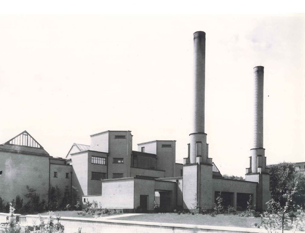 Stookhuis op complexe plattegrond, bestaande uit ten opzichte van elkaar verspringende bouwvolumes van een bouwlaag hoog, onder platte daken. Aan de achterzijde staan twee markante, hoge schoorsteentorens. Aan weerszijden zijn een inrijpoort en een elektriciteitshuisje gesitueerd. De draagconstructie is van gewapend beton, die bekleed is met gele baksteen. Aan het expressieve metselverband is af te lezen dat deze een bekledende en geen constructieve functie vervult. Deuren en vensters zijn van brons. De betonnen gootlijsten en bovenlateien zijn met koper bekleed. Eveneens van koper zijn de hemelwaterafvoeren. Waardering.