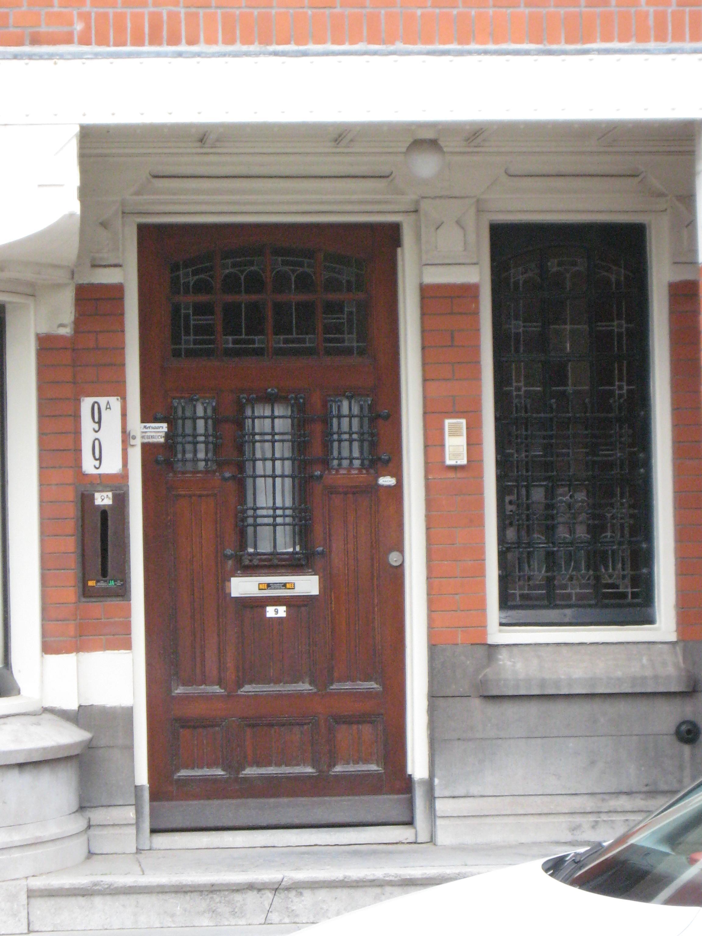 De voorgevel met hardstenen plint is twee vensterassen breed, waarvan de linker wordt beëindigd door een puntgevel. Ter hoogte van de tweede bouwlaag is hier een driezijdige houten erker, rustend op gestileerde hardstenen consoles. Boven de erker is een balkon. De verdiepte entree in de rechter as heeft een hardstenen stoep. Het woonhuis vormt een harmonieus onderdeel van een gesloten gevelwand, waarvan de nrs. 1 t/m 7 en 11 t/m 33a zijn ontworpen door N. Molenaar.