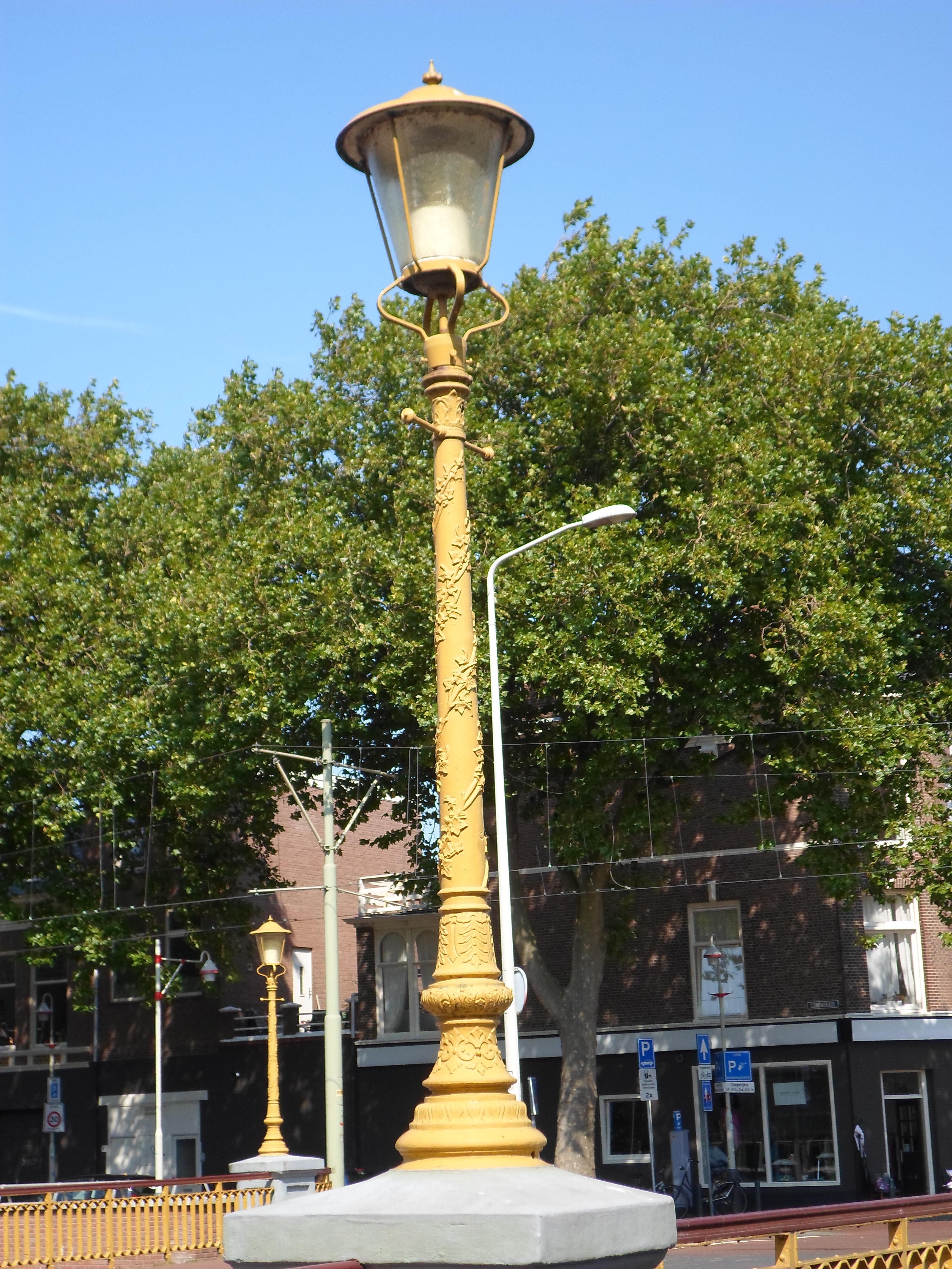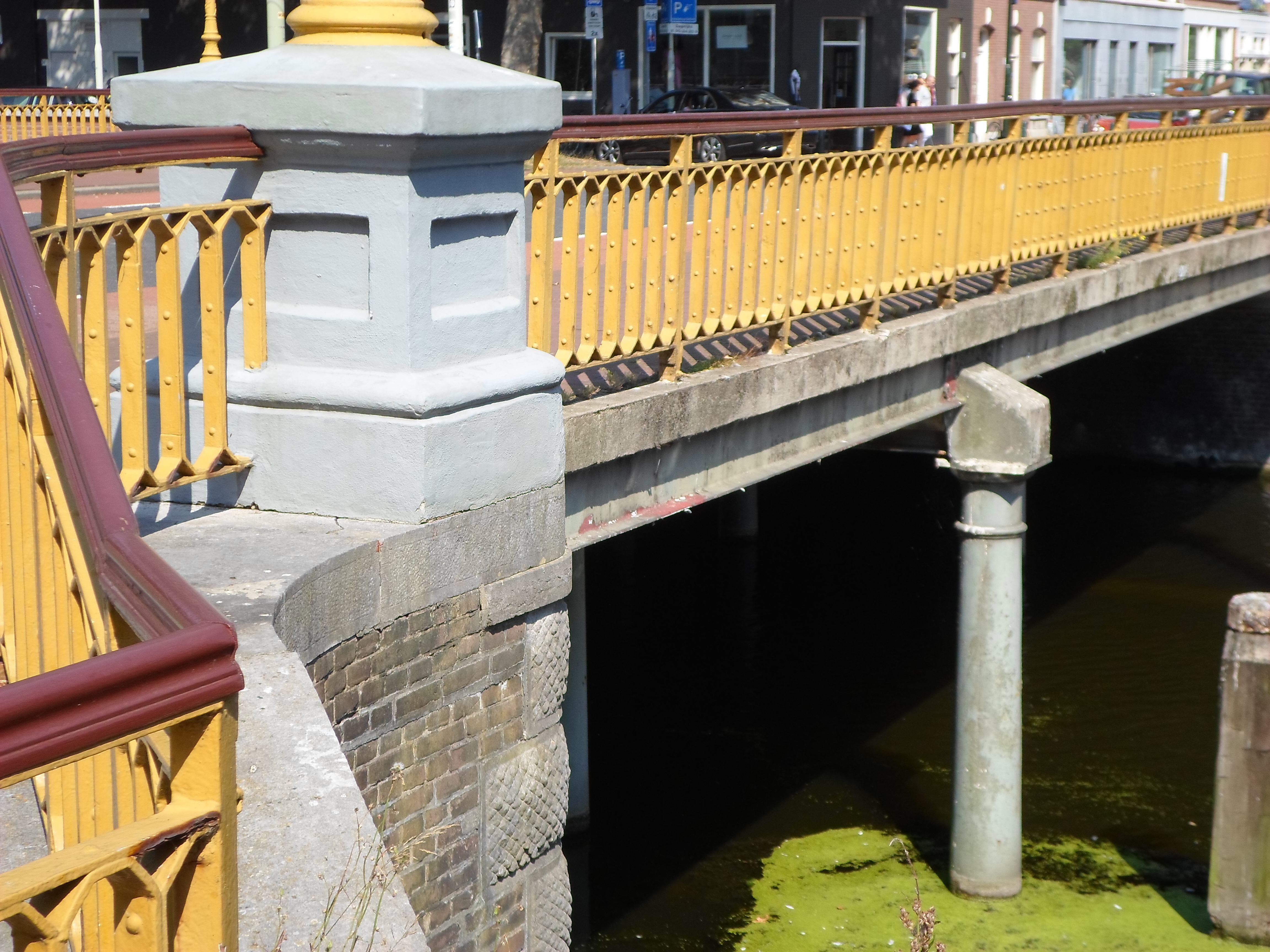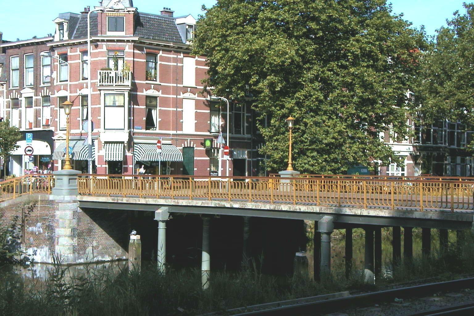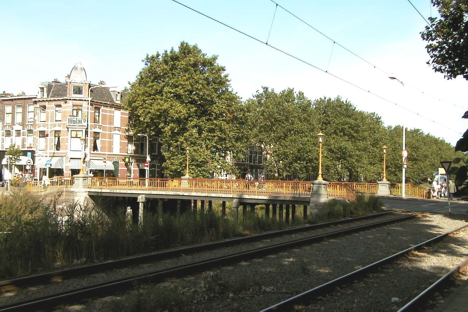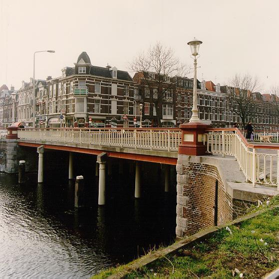 Vaste brug in neorenaissancestiji over het Afvoerkanaal tussen de Conradkade en de Suezkade ter hoogte van de Weimarstraat, gebouwd omstreeks 1889, het jaar waarin het Afvoerkanaal werd voltooid. De brug bezit bakstenen bruggehoofden met bossagewerk in hardsteen op de hoeken. Zij wordt ondersteund door twee rijen ijzeren zuilen in het water, voorzien van Dorische kapitelen. De ijzeren balustrades sluiten op de hoeken aan tegen gietijzeren sierlantaarns op vierkante sokkels. De schachten van de lantaarns vertonen een decoratie van bladranken en bloemen en bezitten klimijzers. De armaturen in historiserende vorm zijn van recente datum.