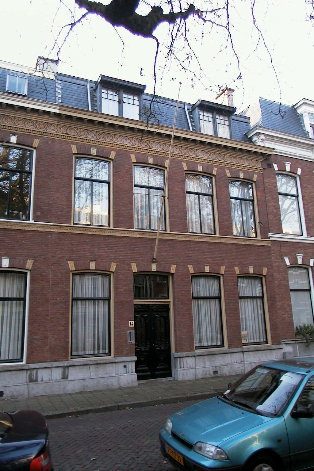 Pand ter breedte van vier vensterassen, bestaande uit parterre en verdieping, gebouwd 1881-1883, vermoedelijk door C.J. van Roode Jr.