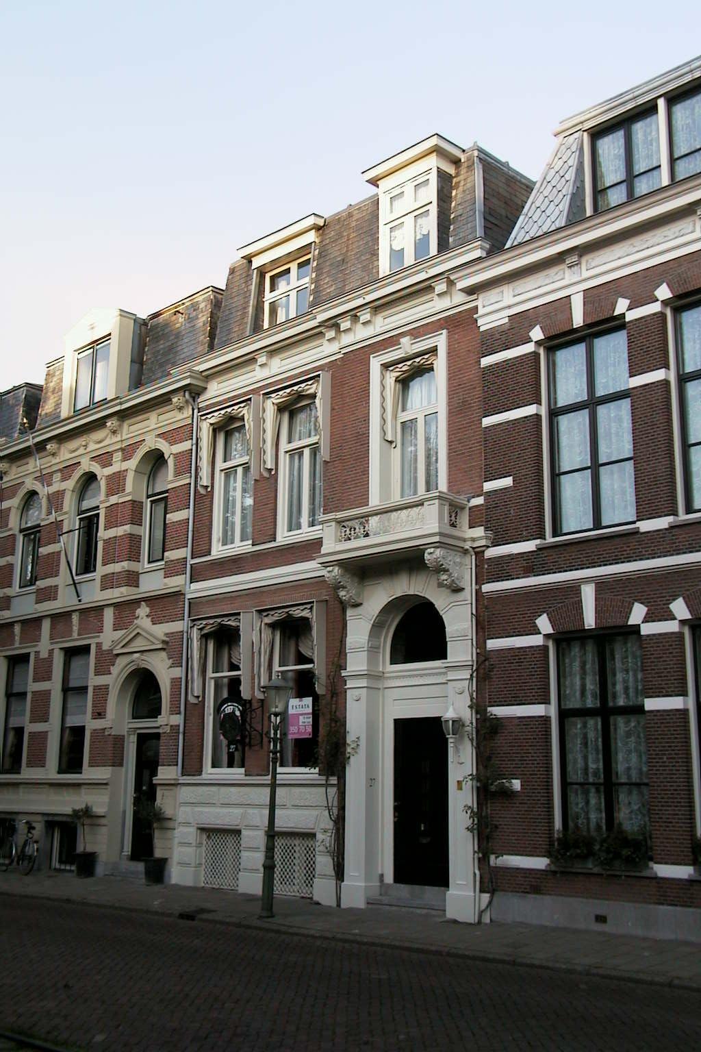 Pand uit 1889-1890 met drie vensterassen brede gevel en rechts een risaliet. In pleister gebosseerd souterrain, belétage en verdieping als schoon metselwerk uitgevoerd. Deur met getoogd bovenlicht en pilasters. Boven de deur een balkon met gietijzeren hek, gedragen door zware bladconsoles. Houten kroonlijst met panelen, consoles en tandingen. De vensters van het souterrain hebben gietijzeren hekken. Architect: waarschijnlijk Th.J. Besseling.