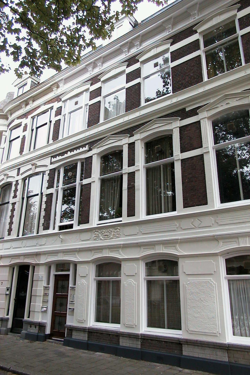 Pand uit 1882-1884, bestaande uit parterre en twee verdiepingen. Eclectische lijstgevel, identiek aan die van no. 3. Blokken en banden van pleister; sluitstenen in terra-cotta. Met hardsteen beklede plint, in pleister gebosseerde parterre. De gevel heeft boven de vensters van de eerste verdieping driehoekige en boven de vensters van de tweede verdieping gebogen frontons. Voorts waterlijsten en een houten kroonlijst met consoles, gesneden in neo-Lodewijk XIV vormen en panelen in het fries. Boven het middelste venster van de eerste verdieping lofwerk in neorenaissancevormen.